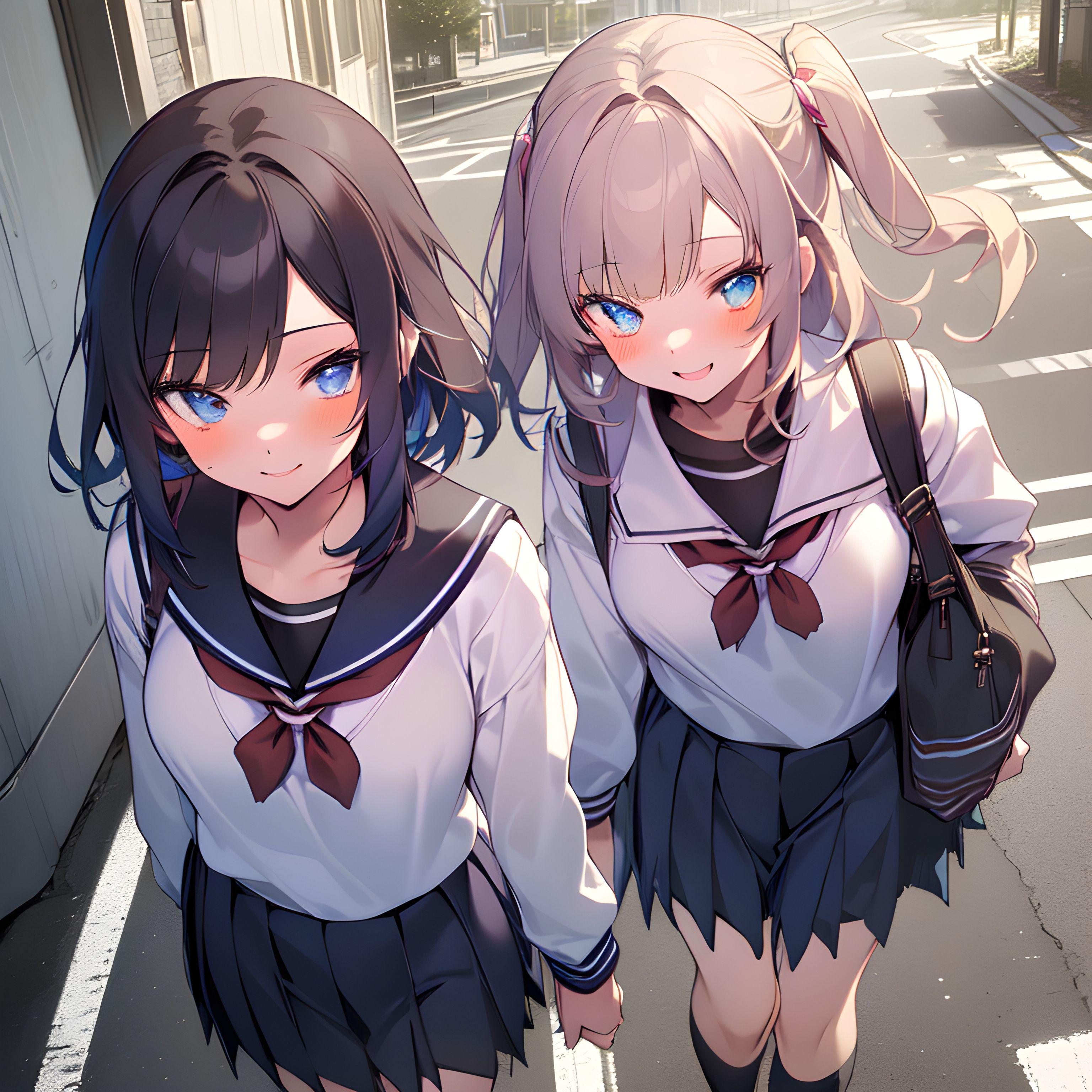 女子高生って何か手を繋いで歩いてるイメージが結構あるので、そんな感じで