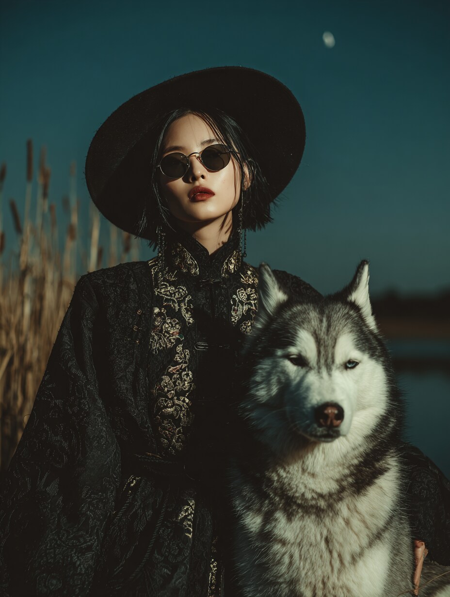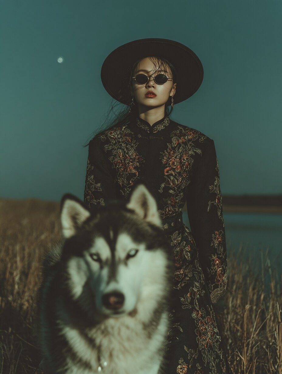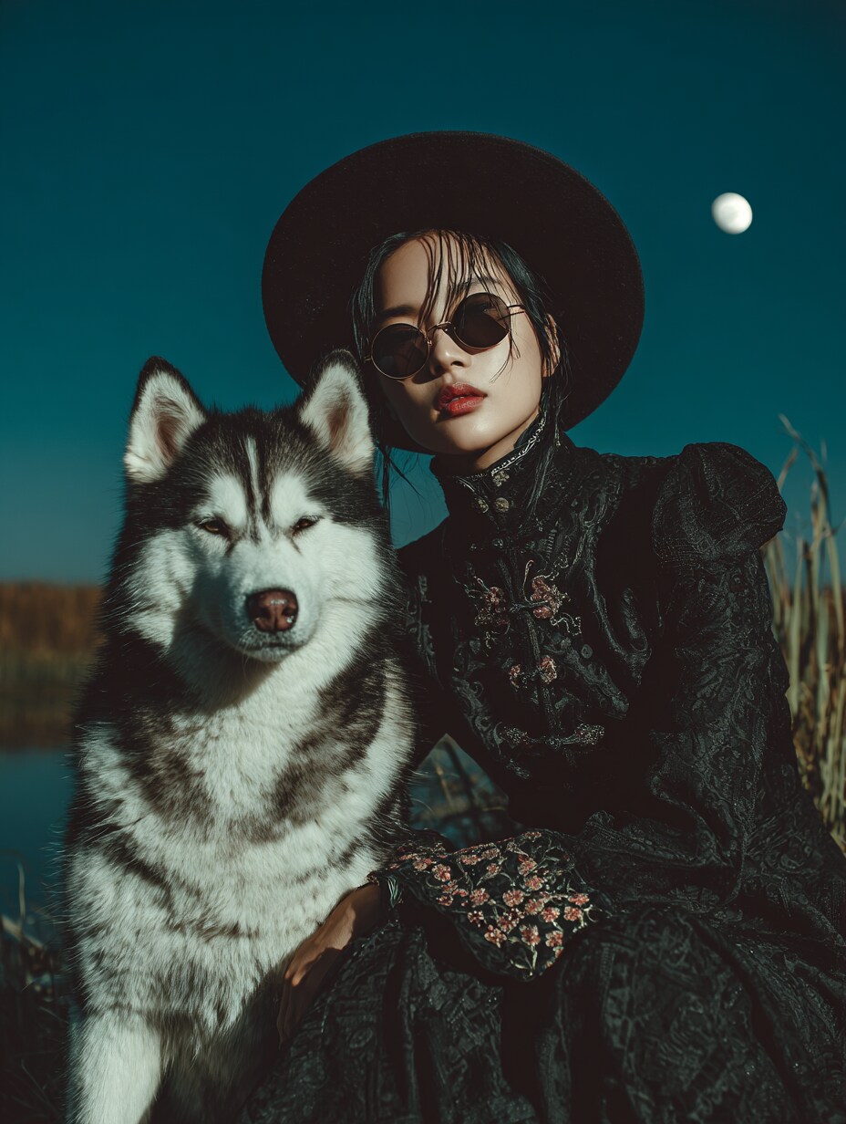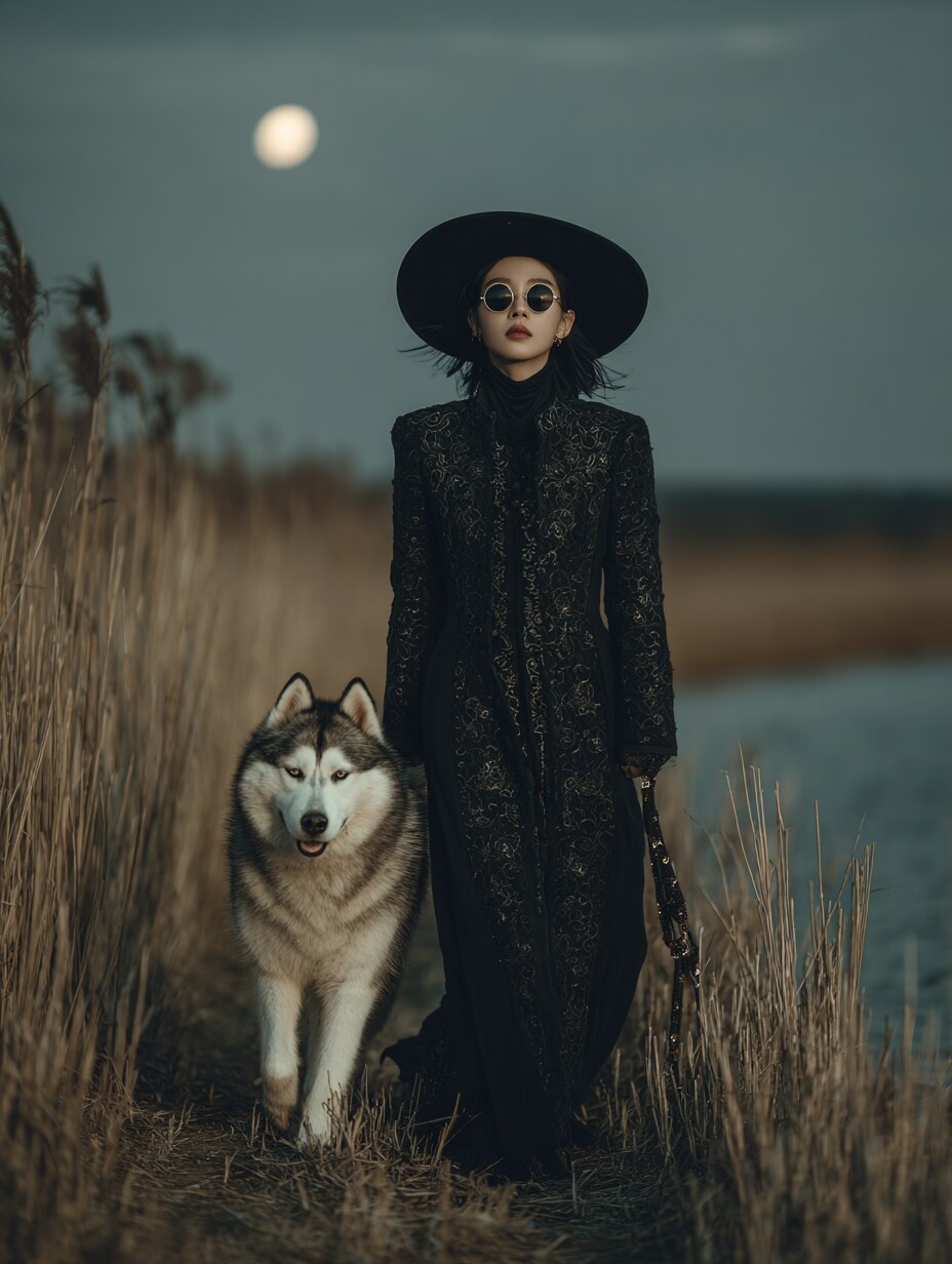とぼやきながら、深夜にハスキーと散歩する風水師ちゃんでした
