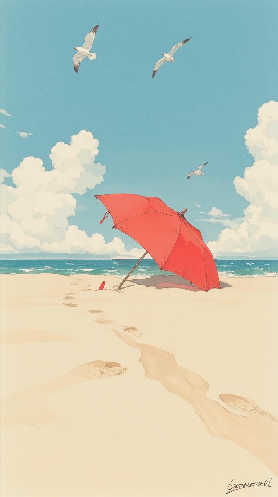 振り返れば、赤いパラソルだけが、過ぎた時間を黙って見送っている。