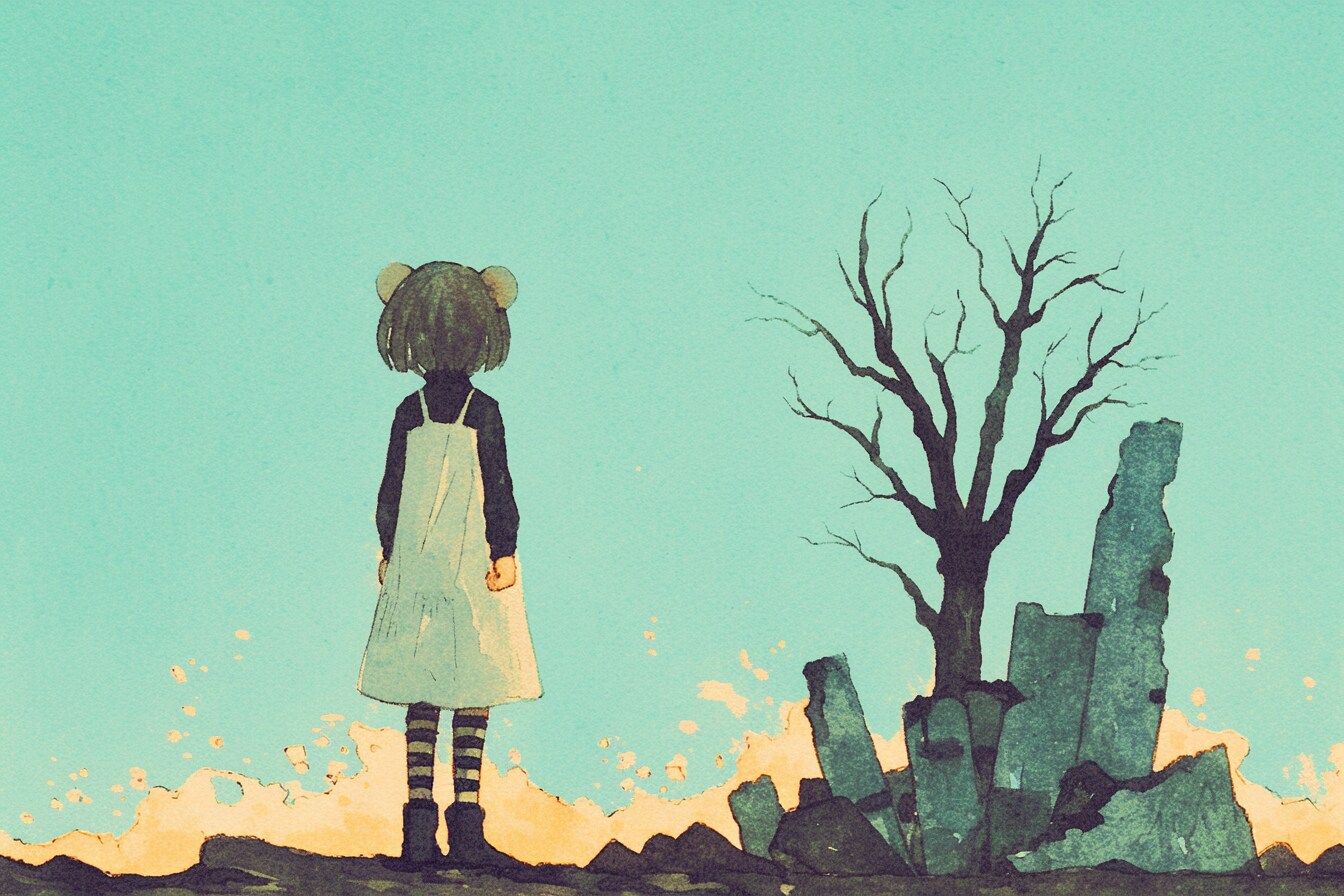重いテーマですが、戦争の様子は間接的な…雰囲気だけ感じるくらいのイラストになるようがんばりました。
