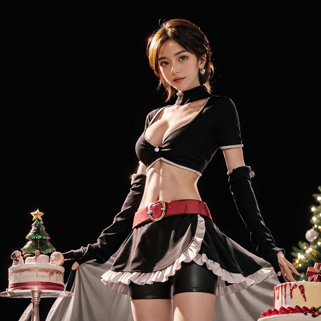 キュアブラックの美墨なぎさが輝く!彼女はへそ出しクリスマスコスプレを楽しみながら、悪と戦います。彼女の冒険は、視聴者に楽しさとワクワク感を与えます。