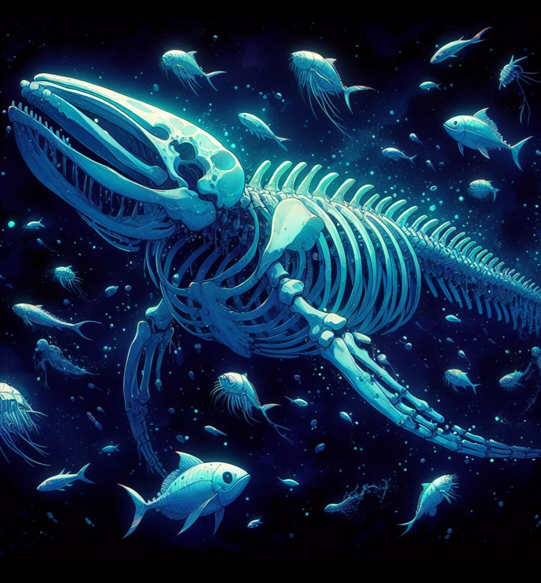 深海の墓場:巨大な骨格の輝き