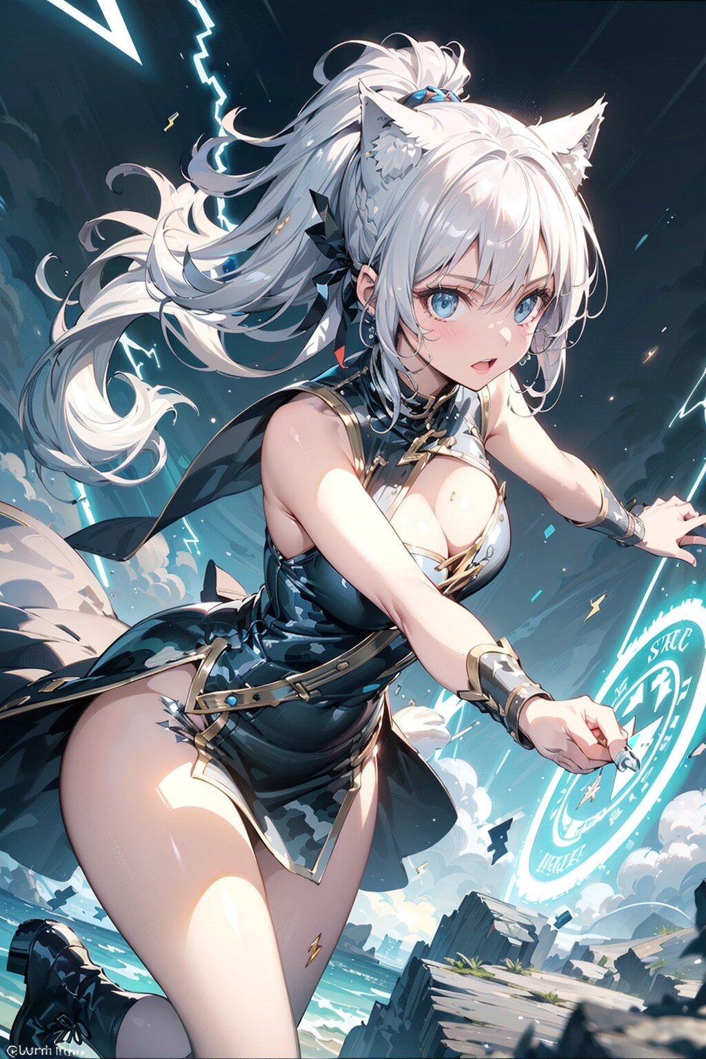 雷魔法を使うカモフラウルフちゃん🐺