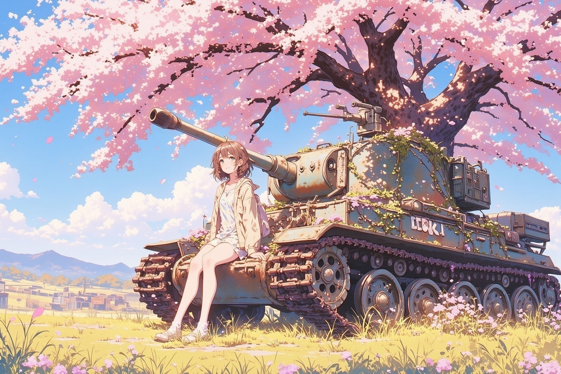 桜と戦車の組み合わせが気に入ったので、違うパターンを作ってみました。