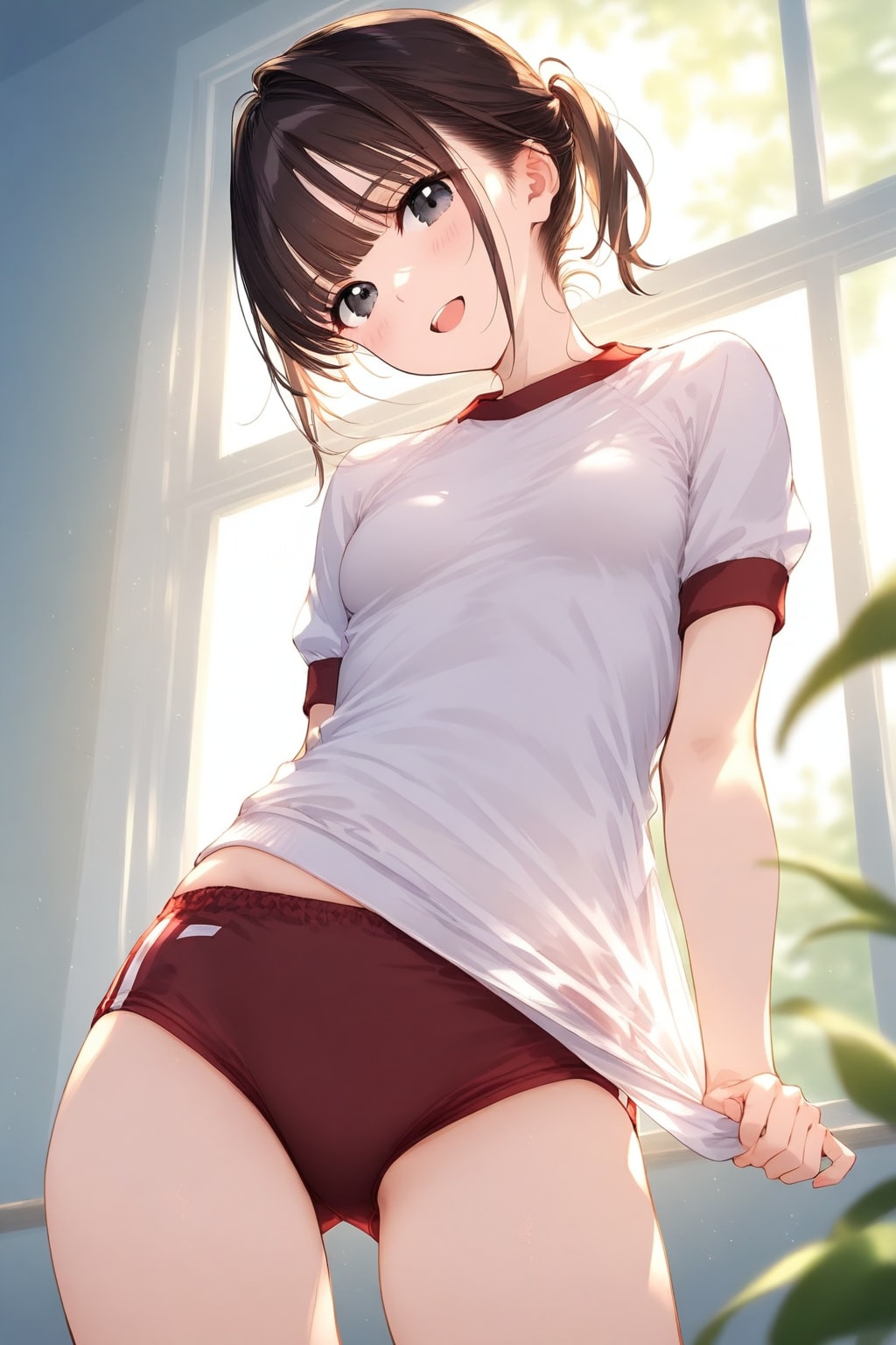 いつもはよそ様の子を生成する時はうちの子の服を着てもらうのですが「たまたま」体操服のプロンプトを弄ってたので着てもらいました。