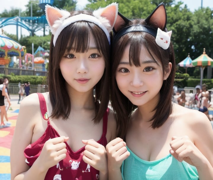 ネコミミランド来たよ❤️ここは女の子はネコミミ付けて薄着になればなるほど割引されるんだって!🐈