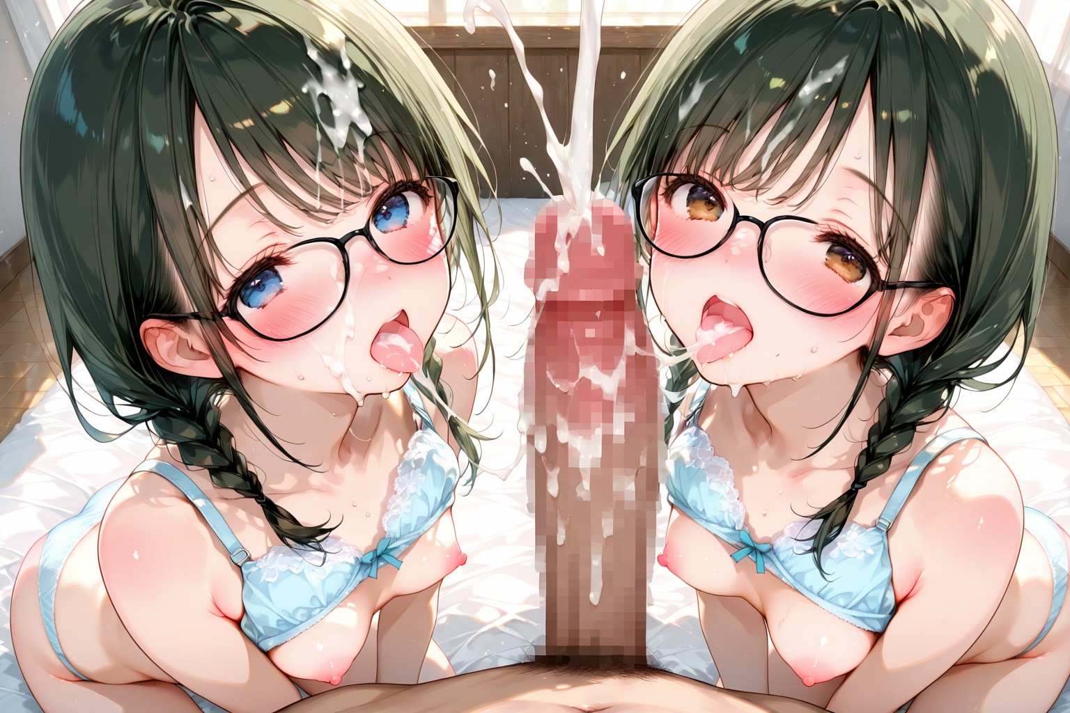 眼鏡三つ編み双子ちゃんたちのお◯ん◯んぺろぺろ責め
