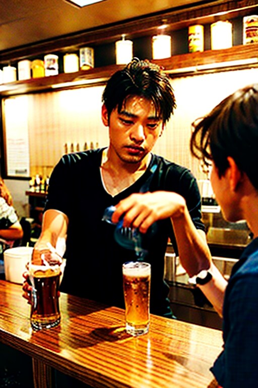 スマホを見る、ビアグラスを持つ、壁にもたれる、横を向くといった調整を行ってみました。スマホはなかなか出てこないので調整が困難ですね。