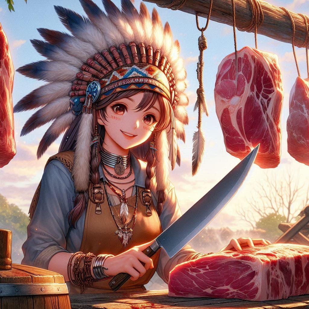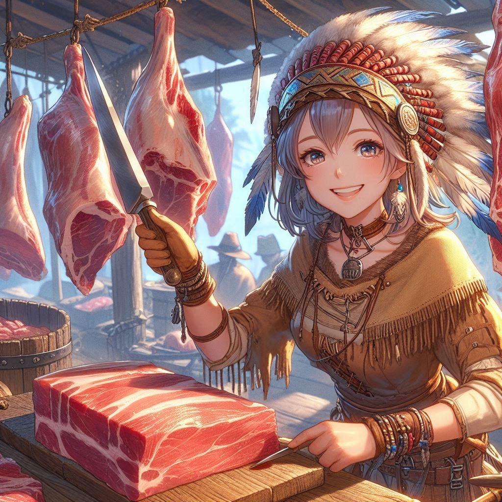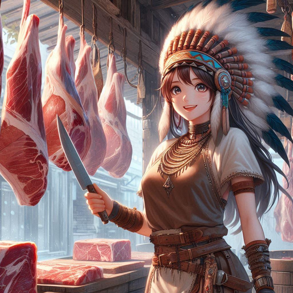 様々な種類の肉が持ち込まれるが、肉屋では「肉」という大きな括りで扱われる。