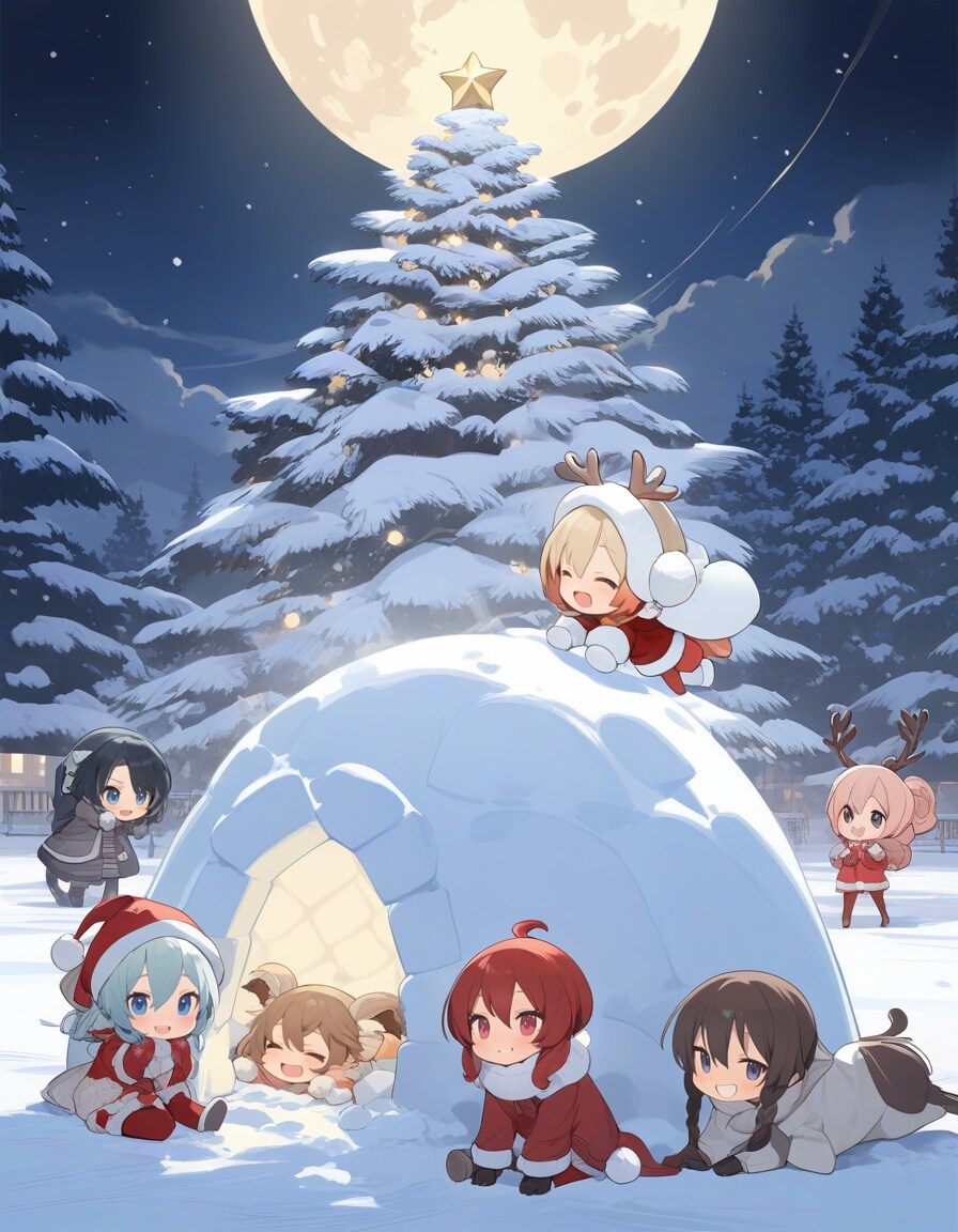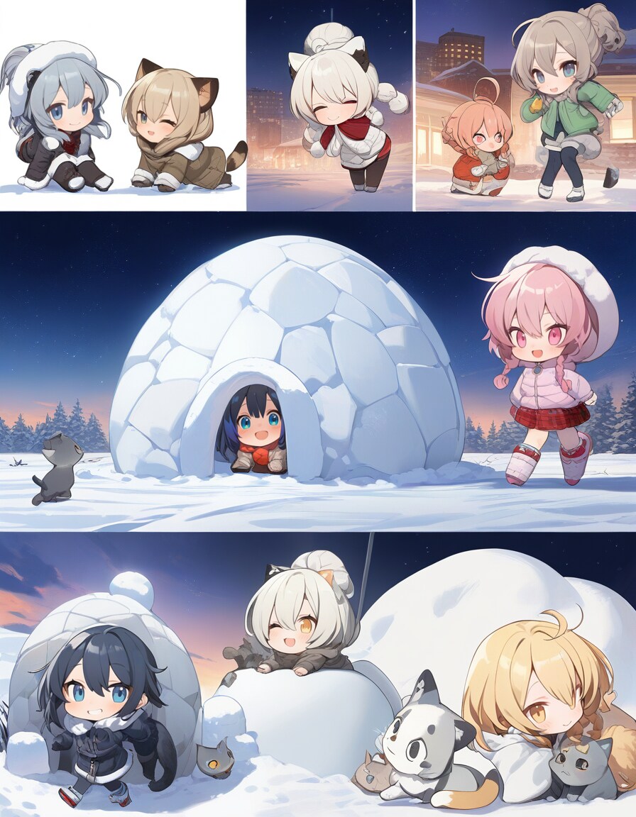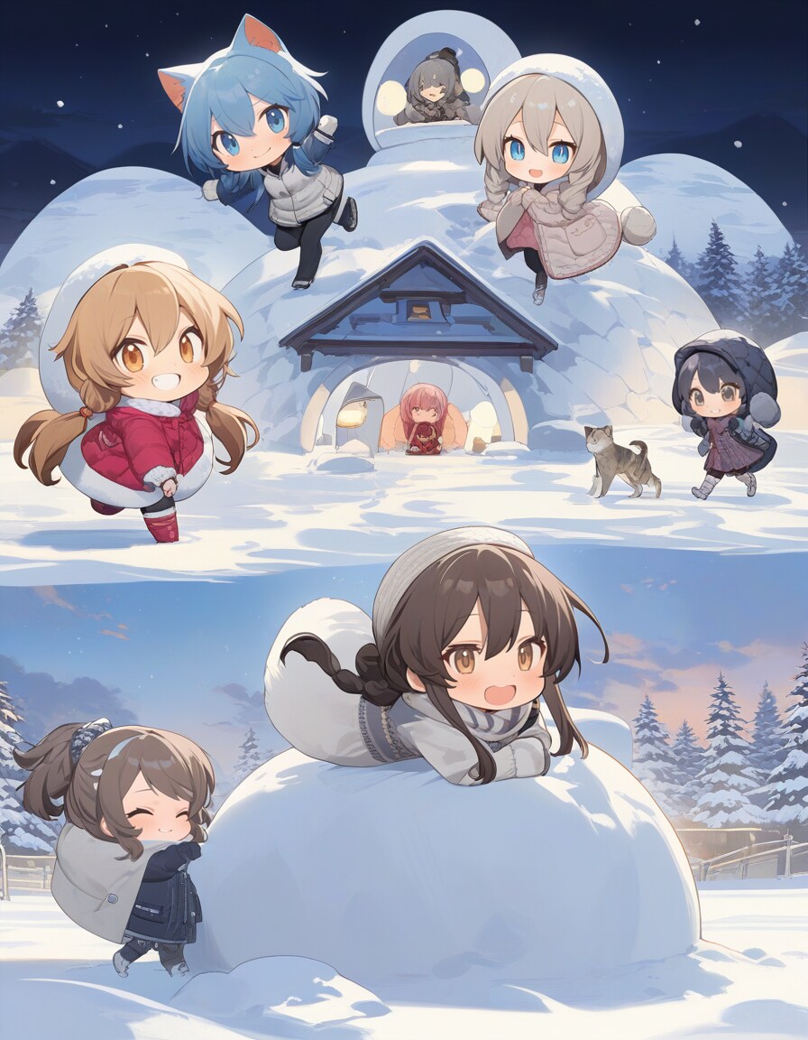 縦構図にしたら、何故か漫画調になりました。でも、ちゃんとかまくら作ってます💕