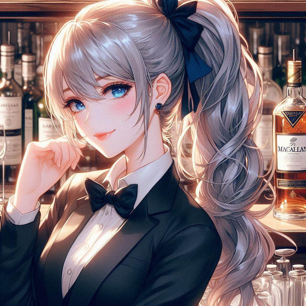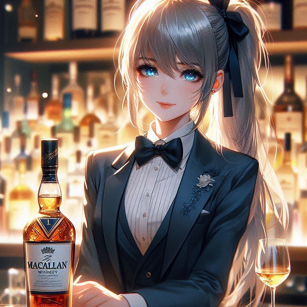 お礼イラストは、お好きだというマッカランのボトルと、うちの子香澄さんの組合せです✨