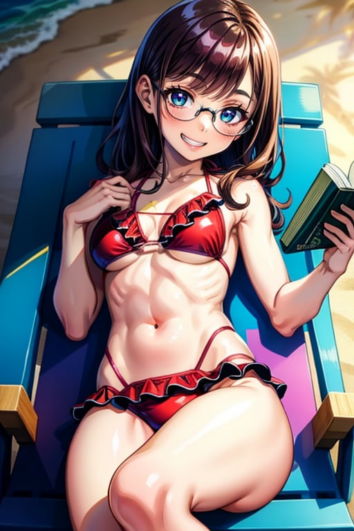 いつも着ているジッパー付きのパーカーと水着姿で、痩せすぎた体から見える鍛えられてない腹筋を見せる。