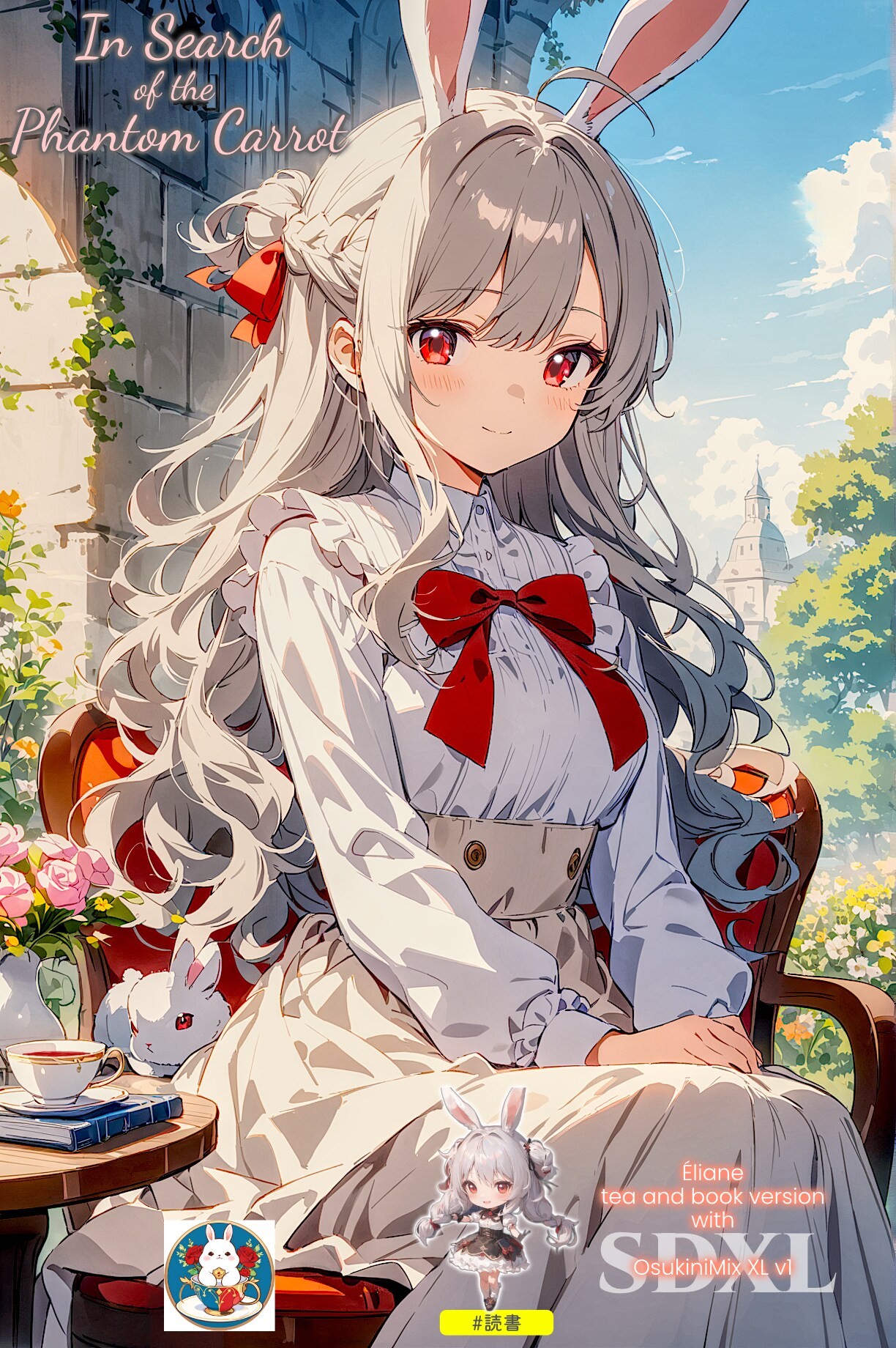 うちの子代表のエリアーヌは美味しいお茶とお菓子と読書が好きな設定なので、エレガントに本を読む一枚を作ってみました。