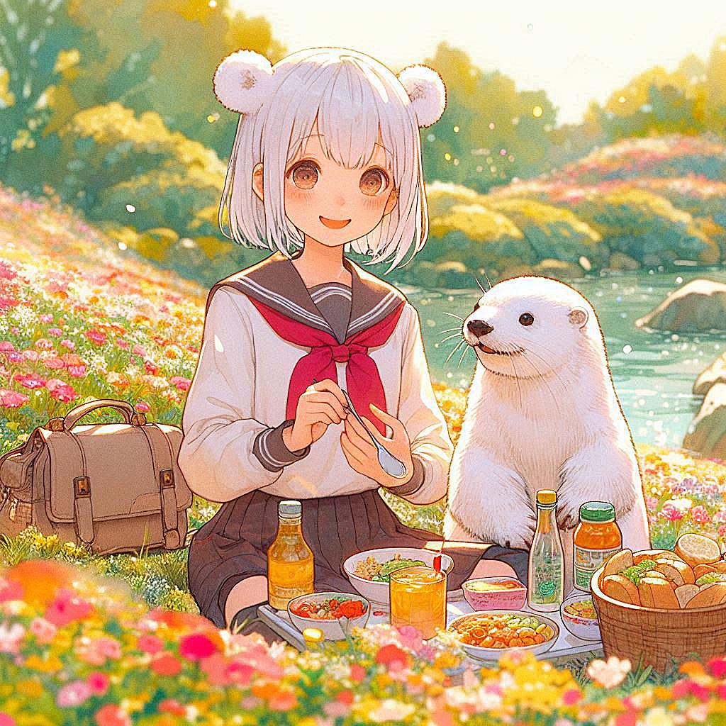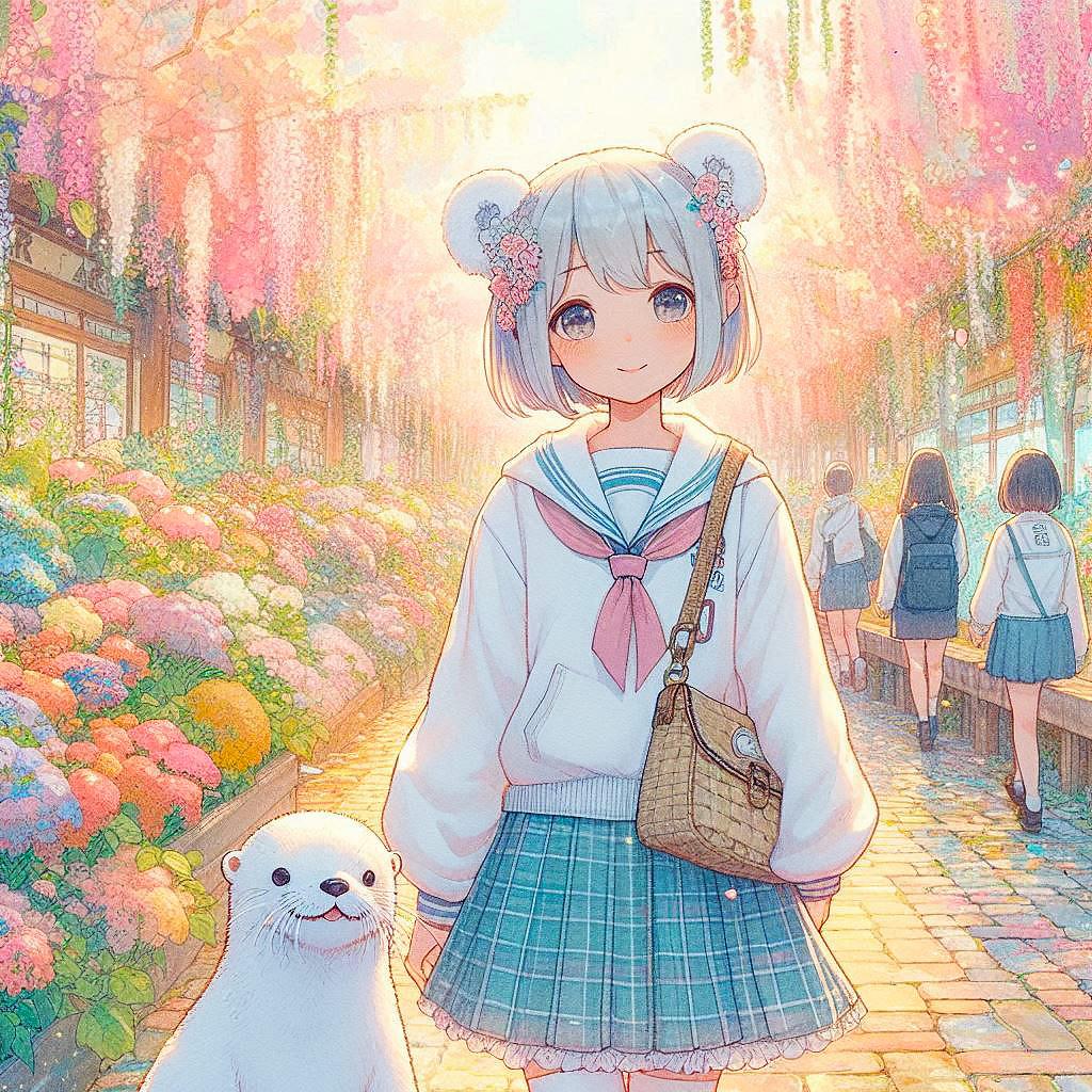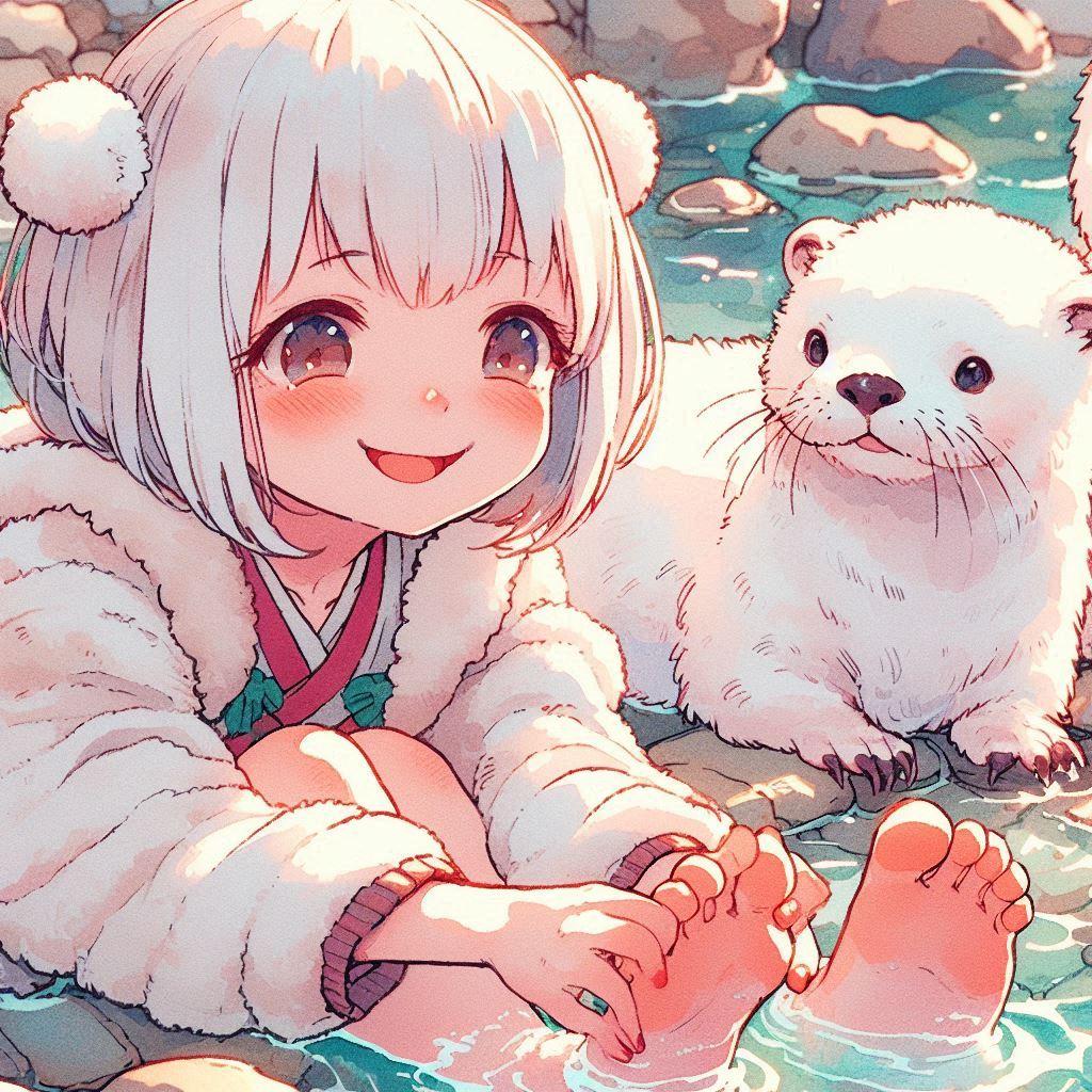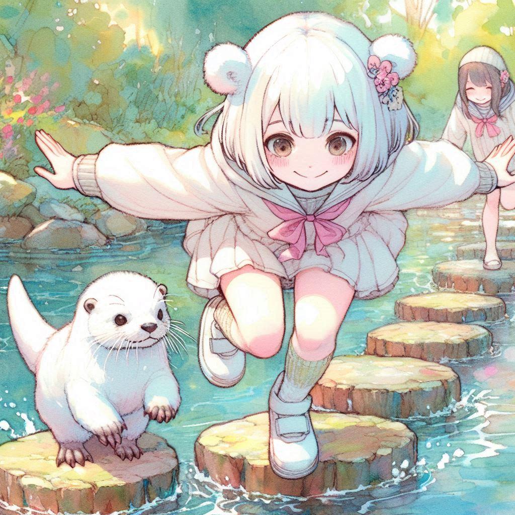 ImageFX先生の何倍か試行してなんとかイメージに近い白ラッコ出してますw