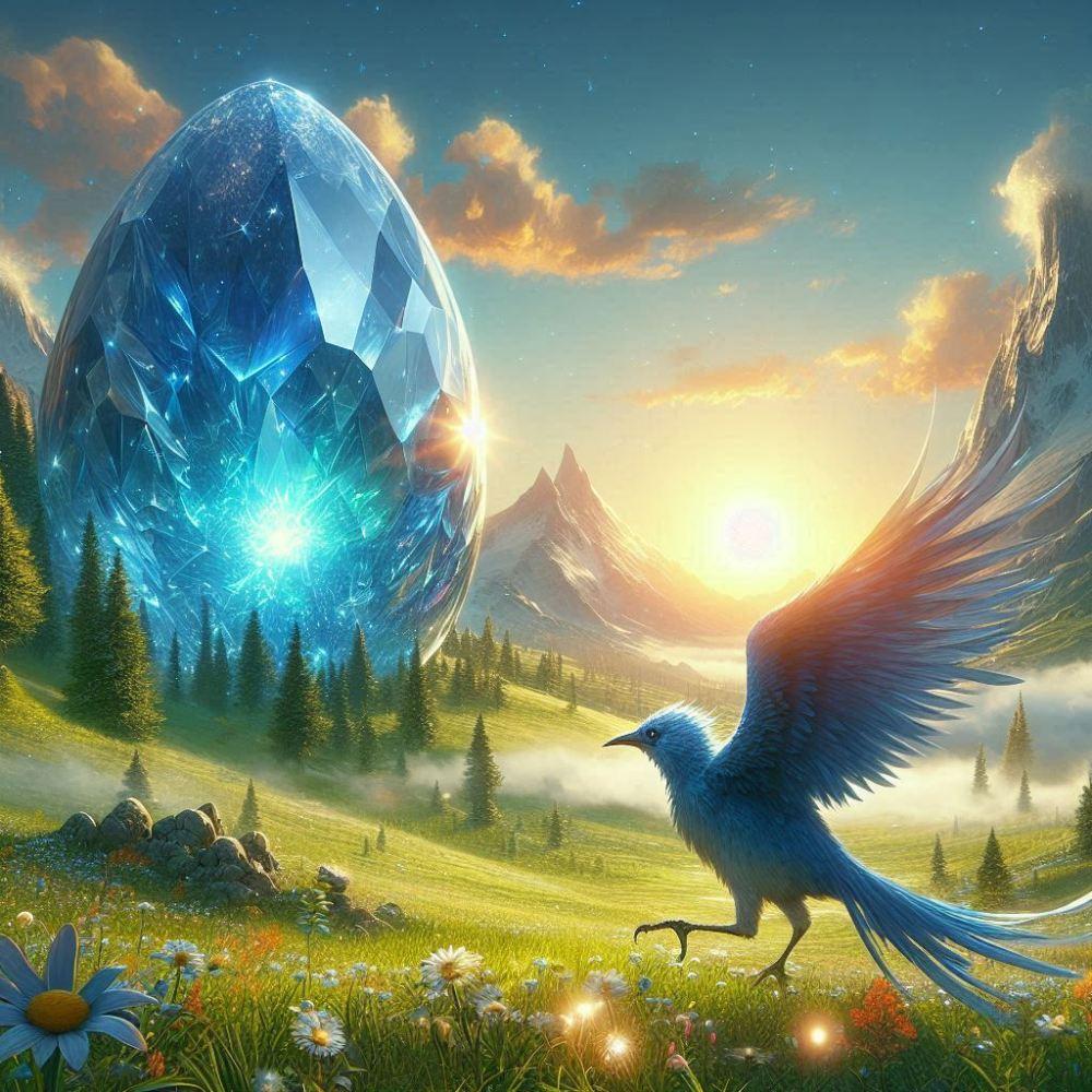 ファンタジー風光る卵出産抜け忍鳥娘人妻&幸福の青い巨鳥と光る巨卵
