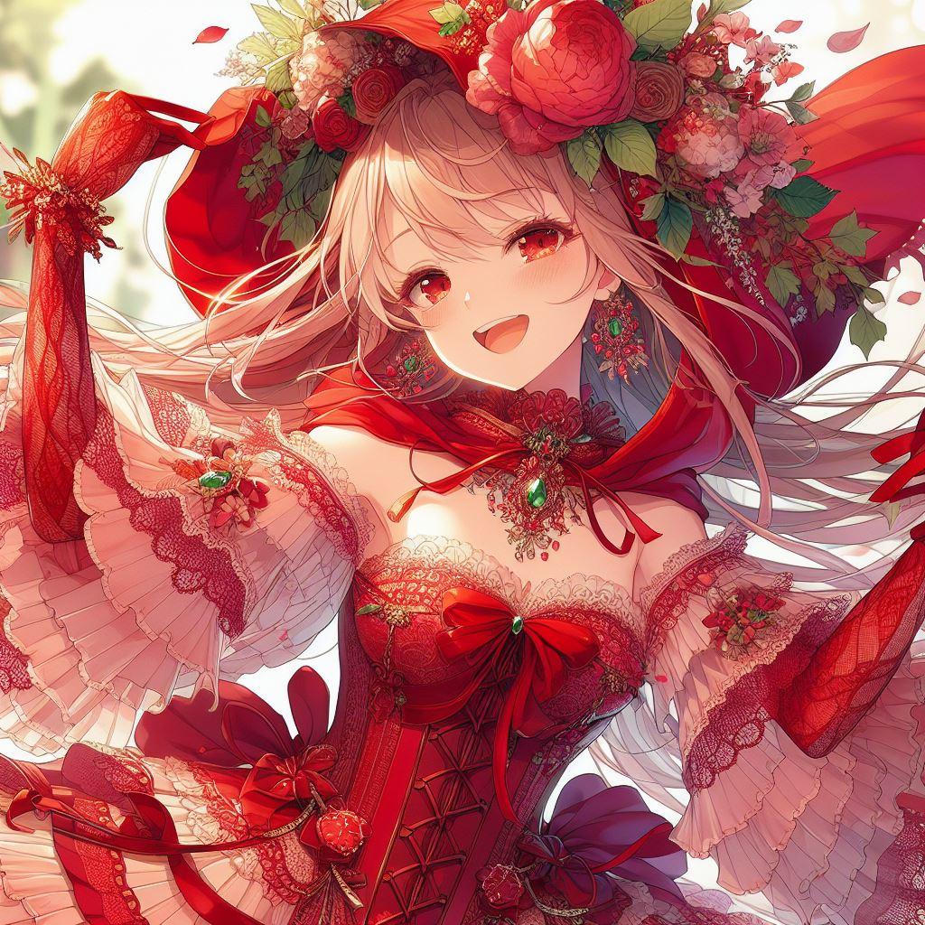 華やかな赤_赤ずきん風ドレス