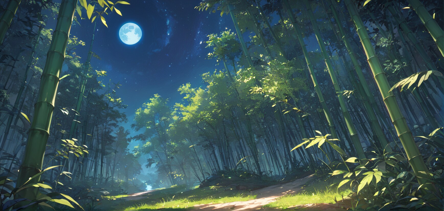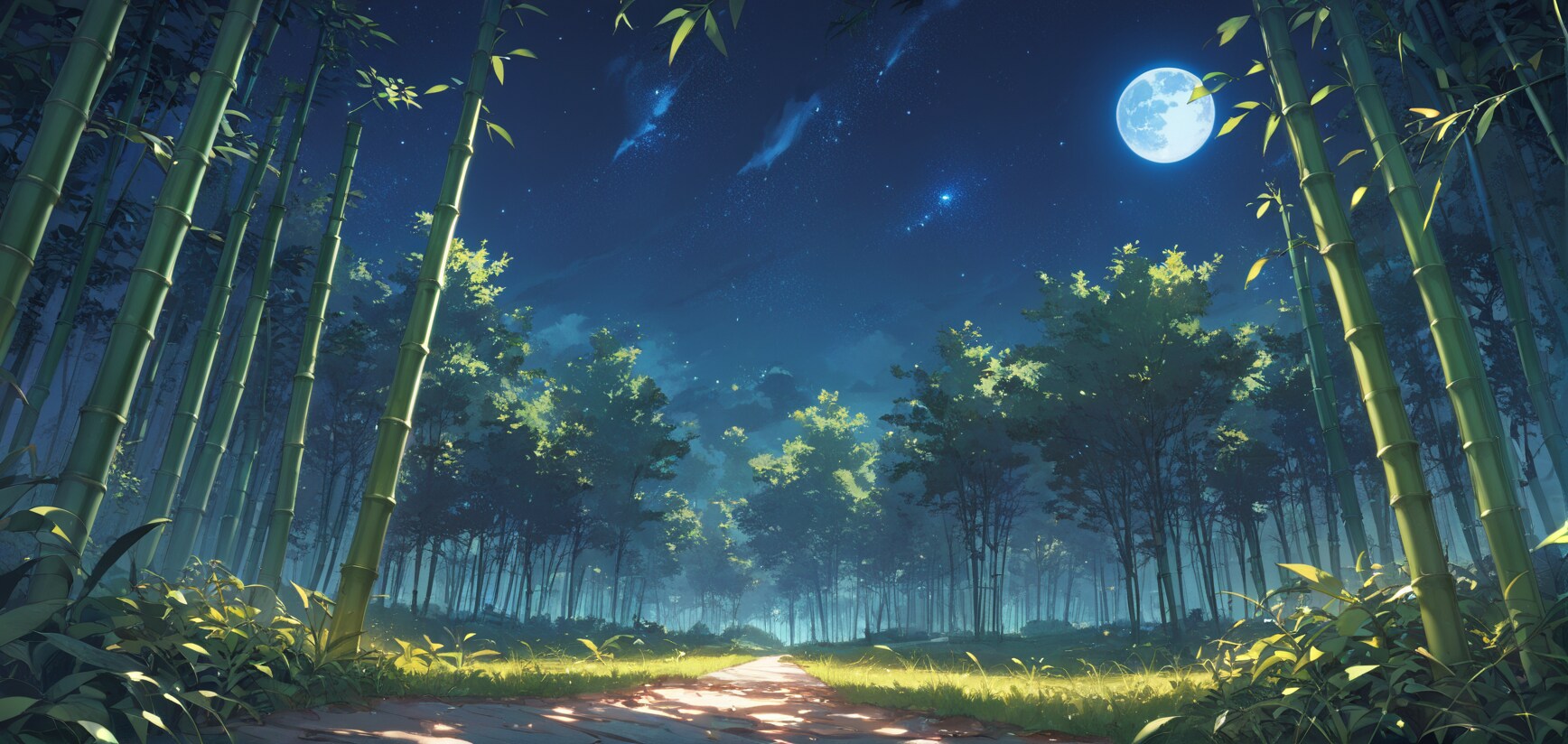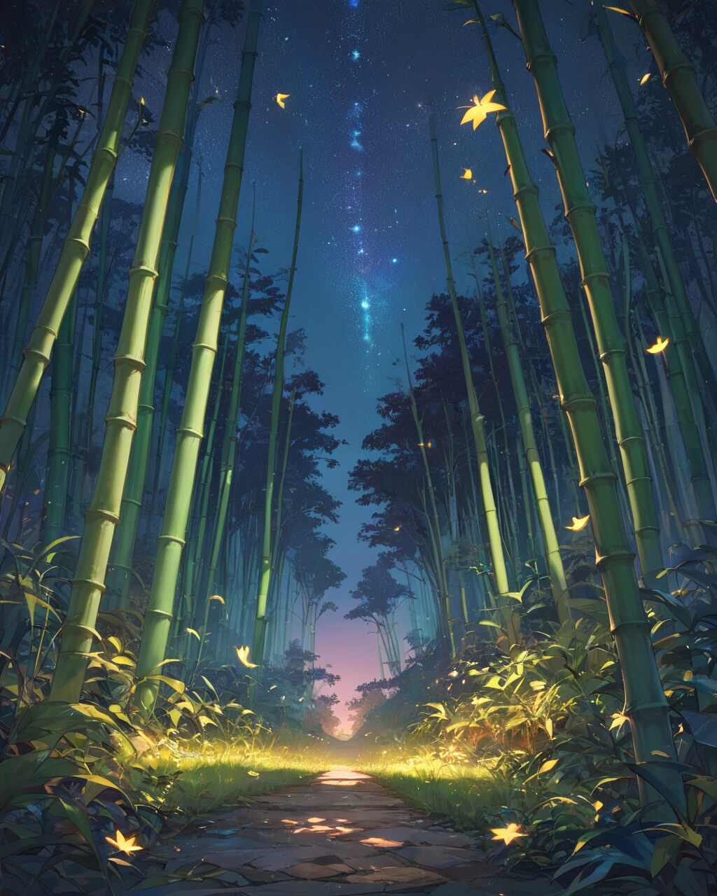 星空と竹林道