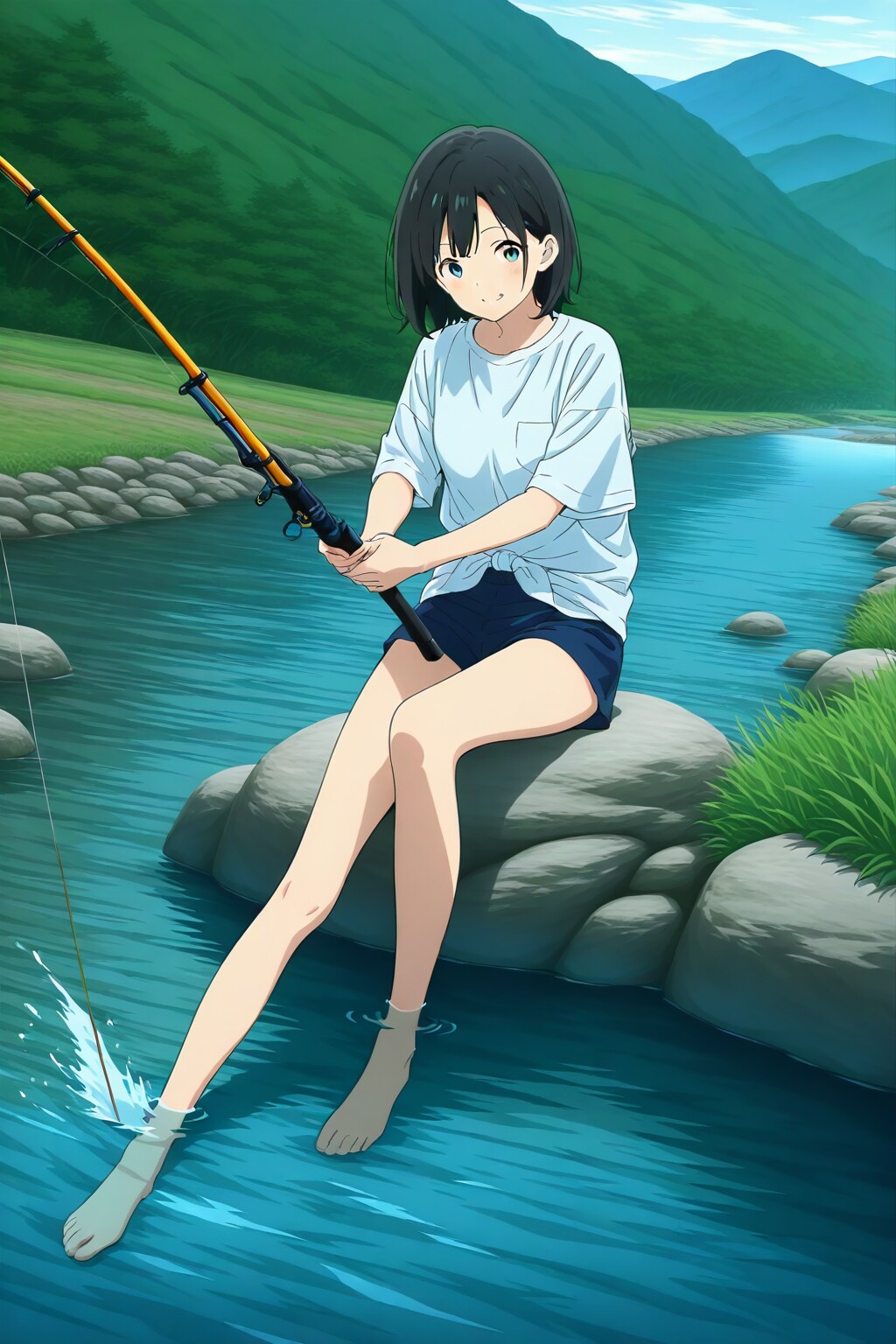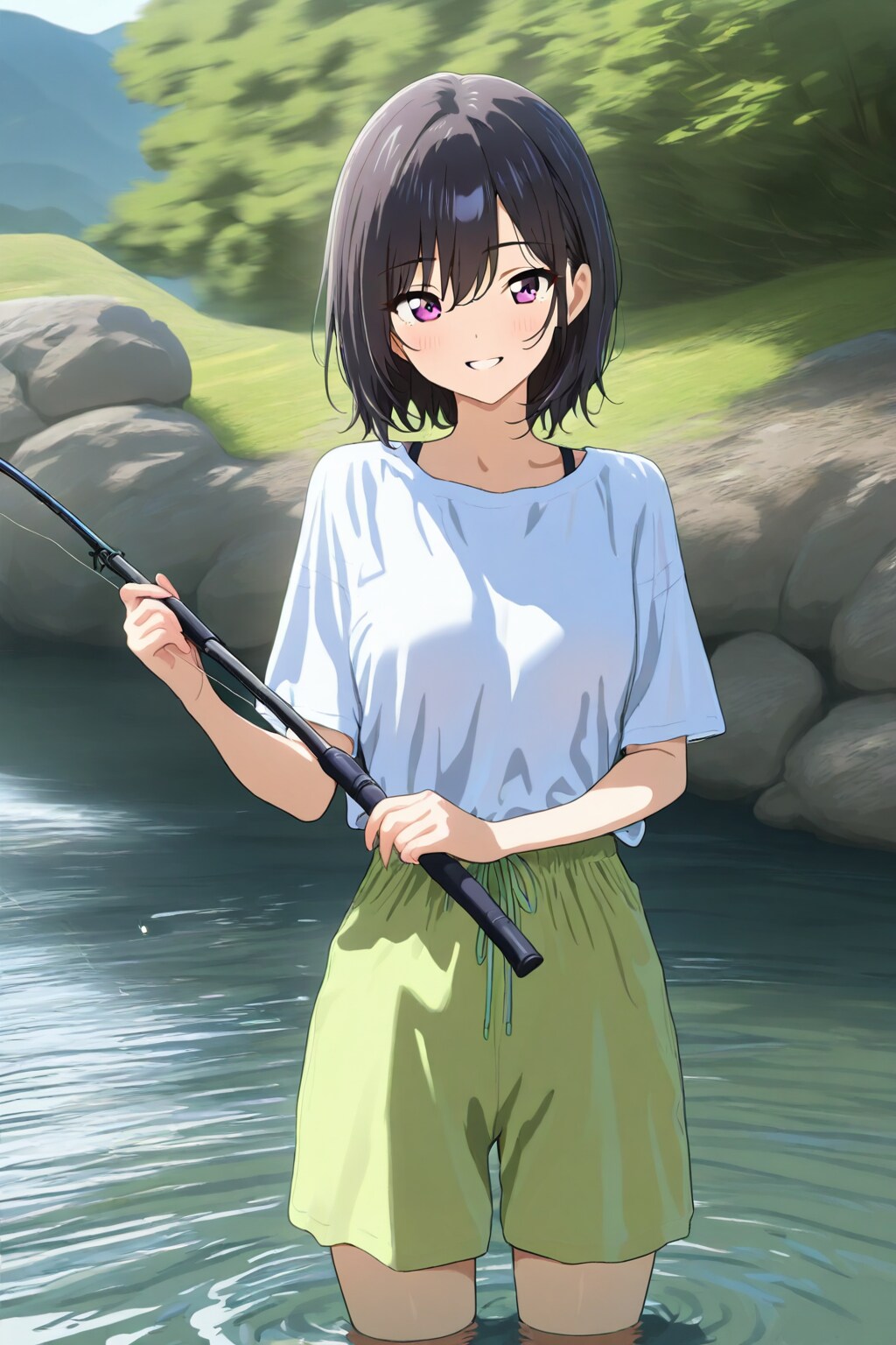 jacket partially removed, heart in eye, burnt clothes, holding fishing rod, kanji, doujin cover, pentagram, tape gag, adjusting headwear, red socks, friends, cloud print, coke-bottle glasses, oral invitation, competition school swimsuit, barbell piercing, gradient legwear, prisoner, blood on breasts, wind chime, carrying over shoulder, tape measure, flaming weapon