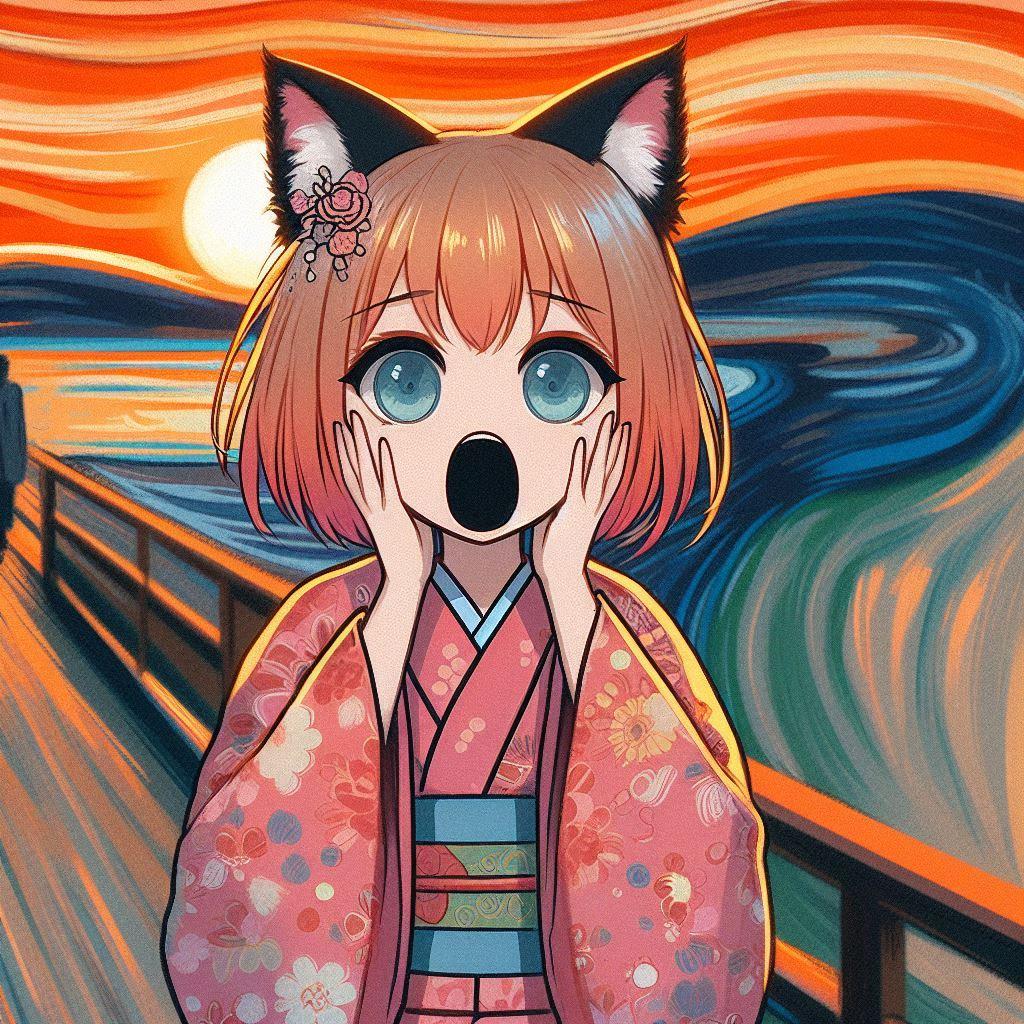 ムンクの叫び風ねこの肖像画