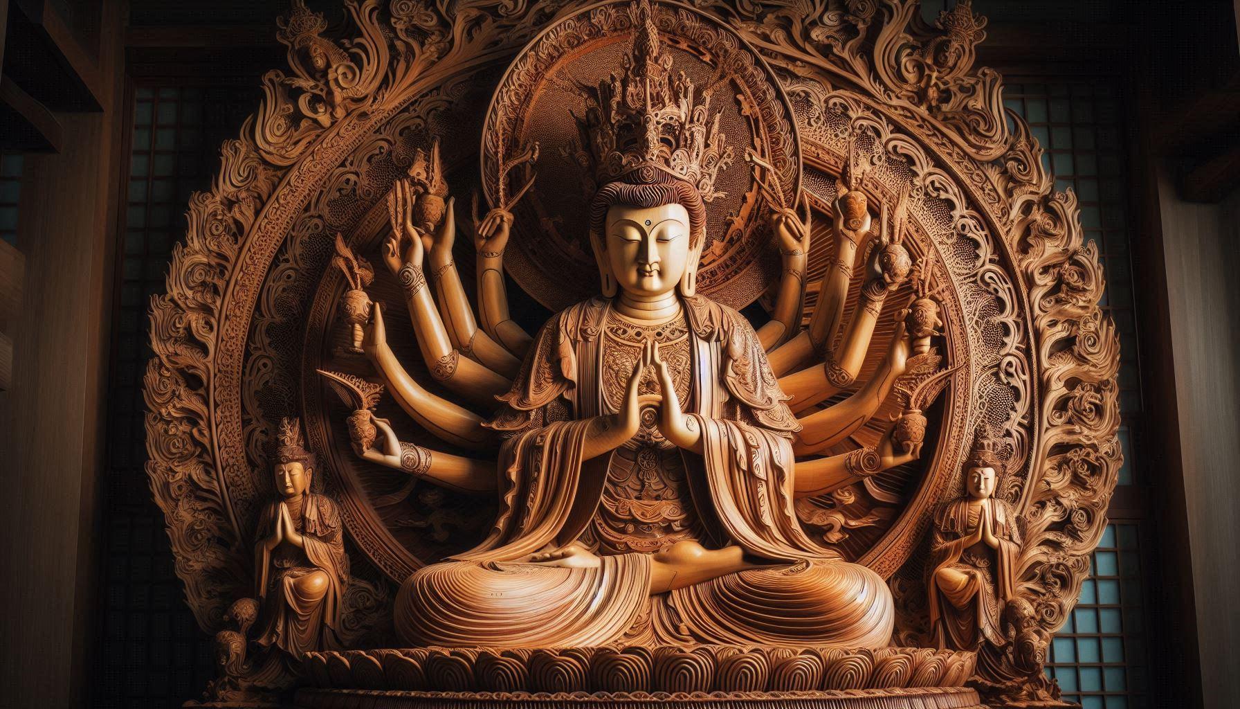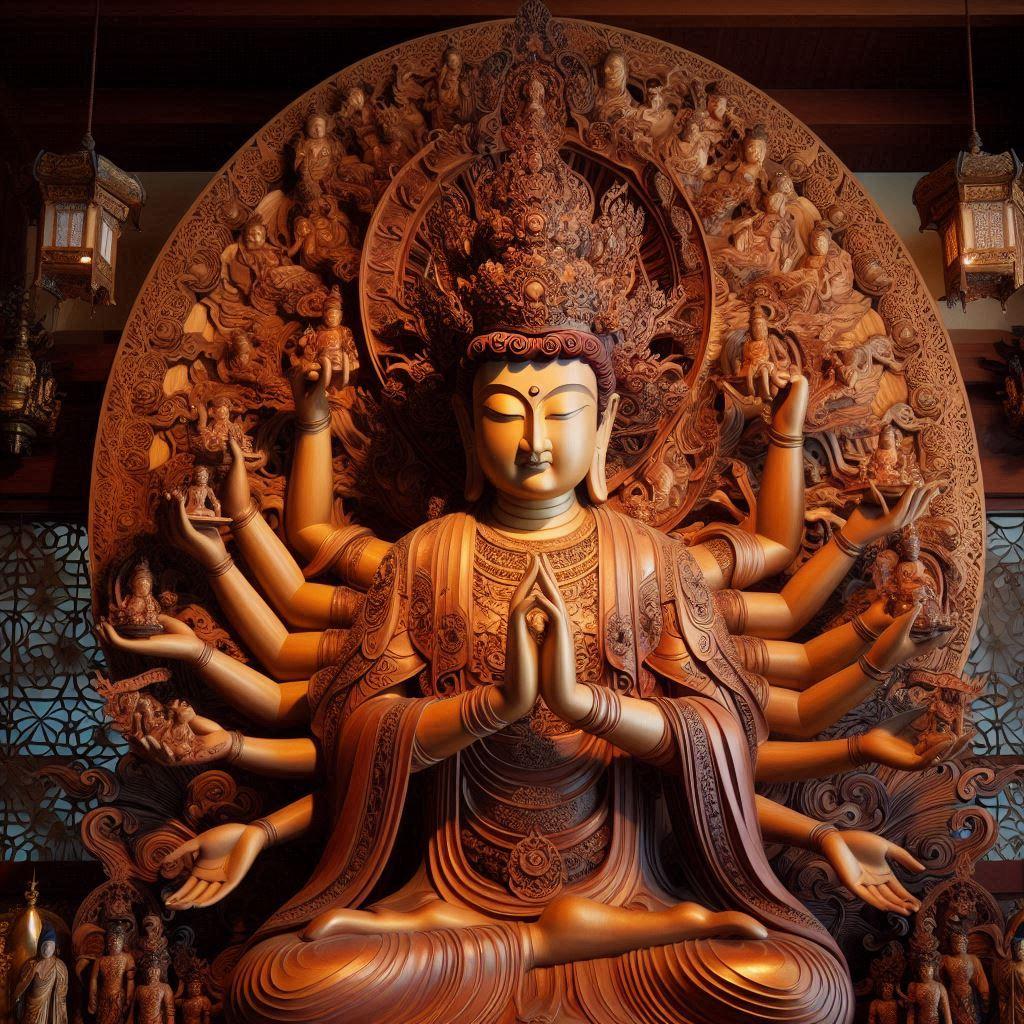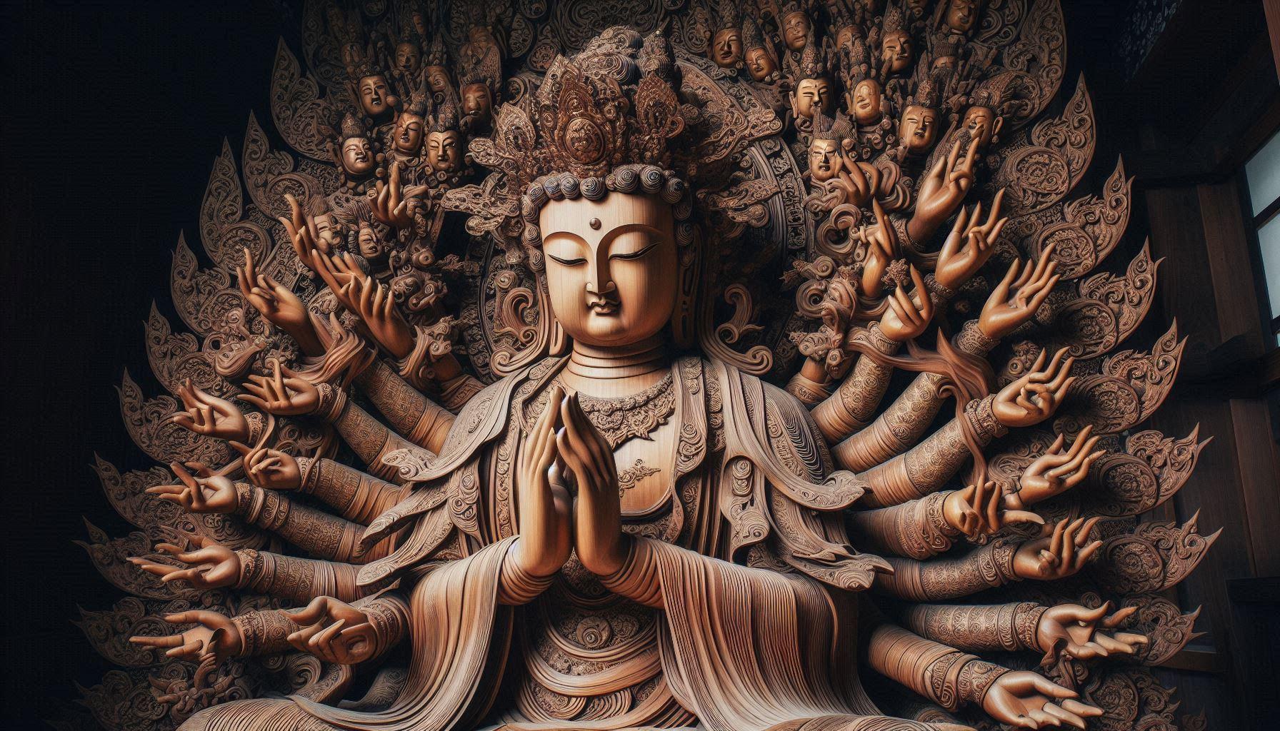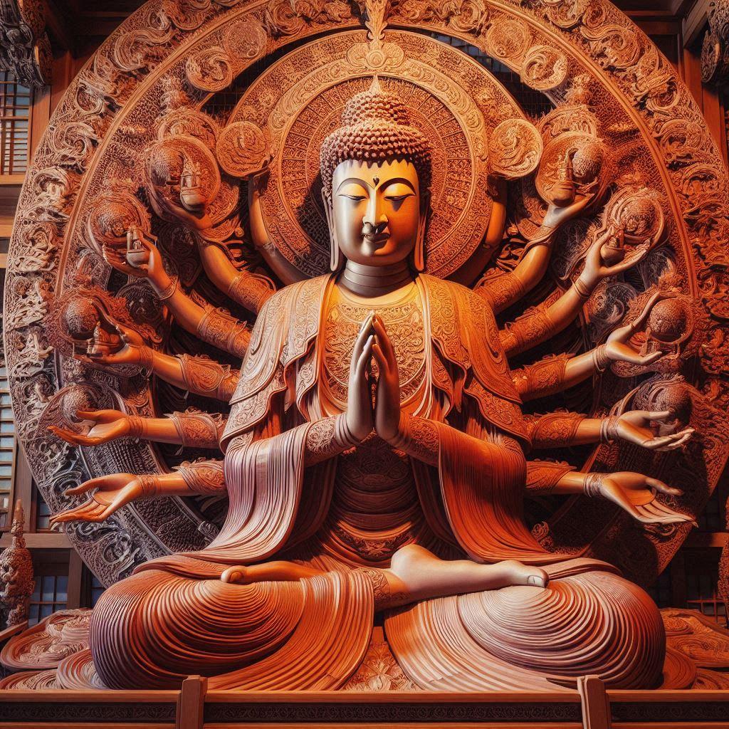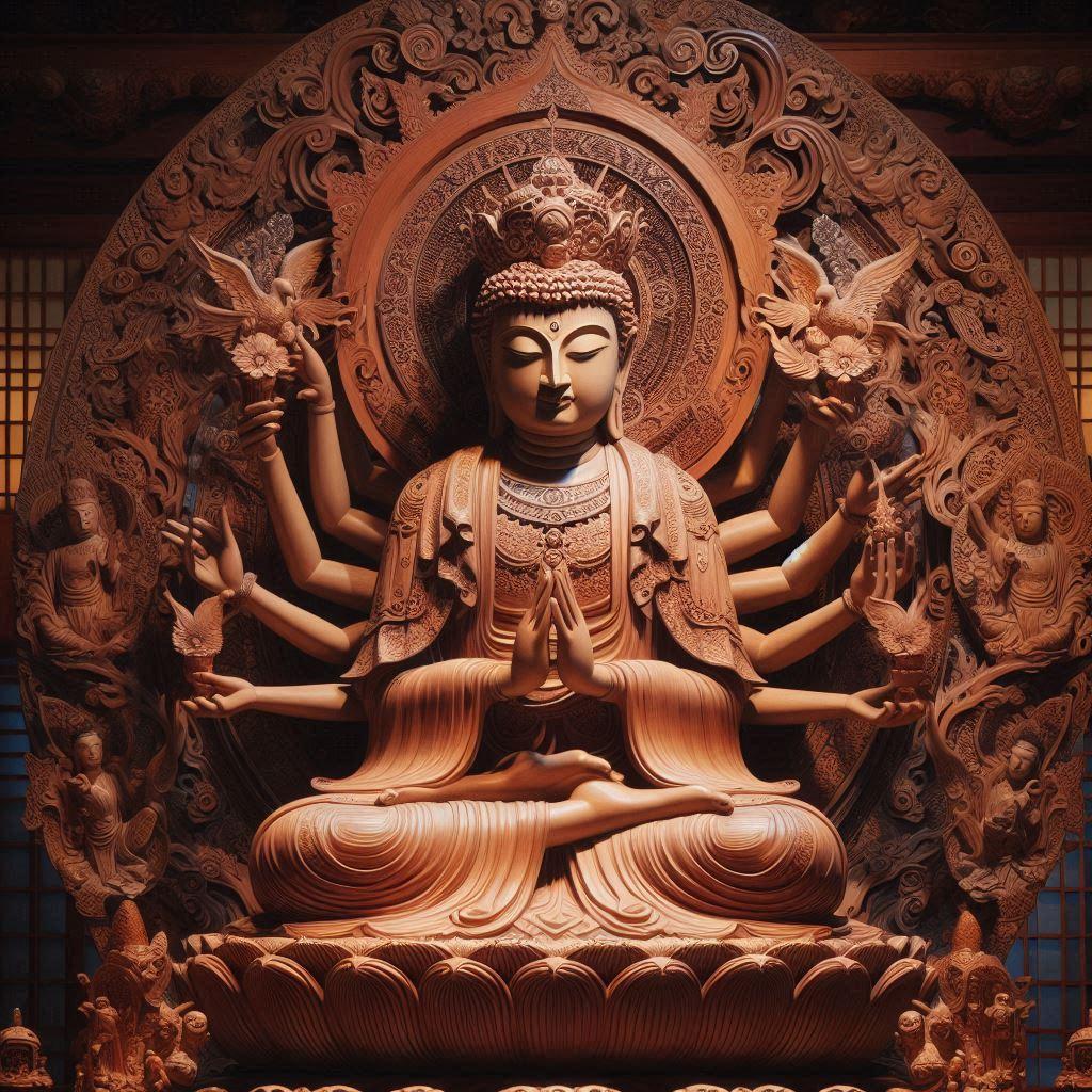 仏像の知識が無い私の個人的な戯言ですが?・・AIちゃんの生成品と思えない?神々しい千手観音像が召喚されました😊。