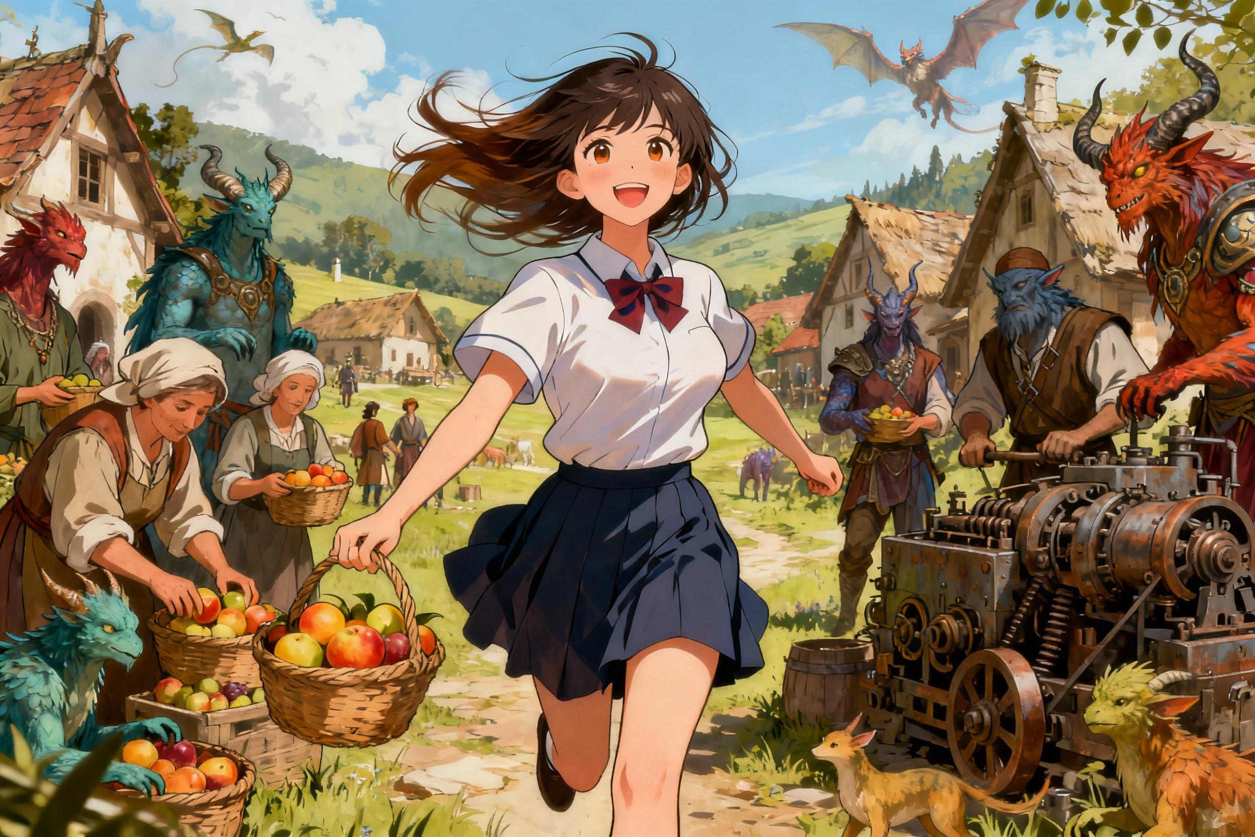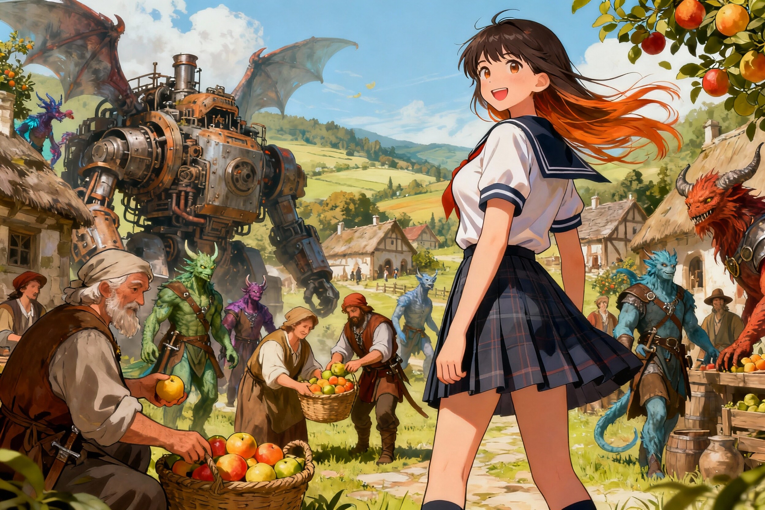 毎回同じプロンプトにアレンジを加える感じなんですが、今回加えたのは「収穫」