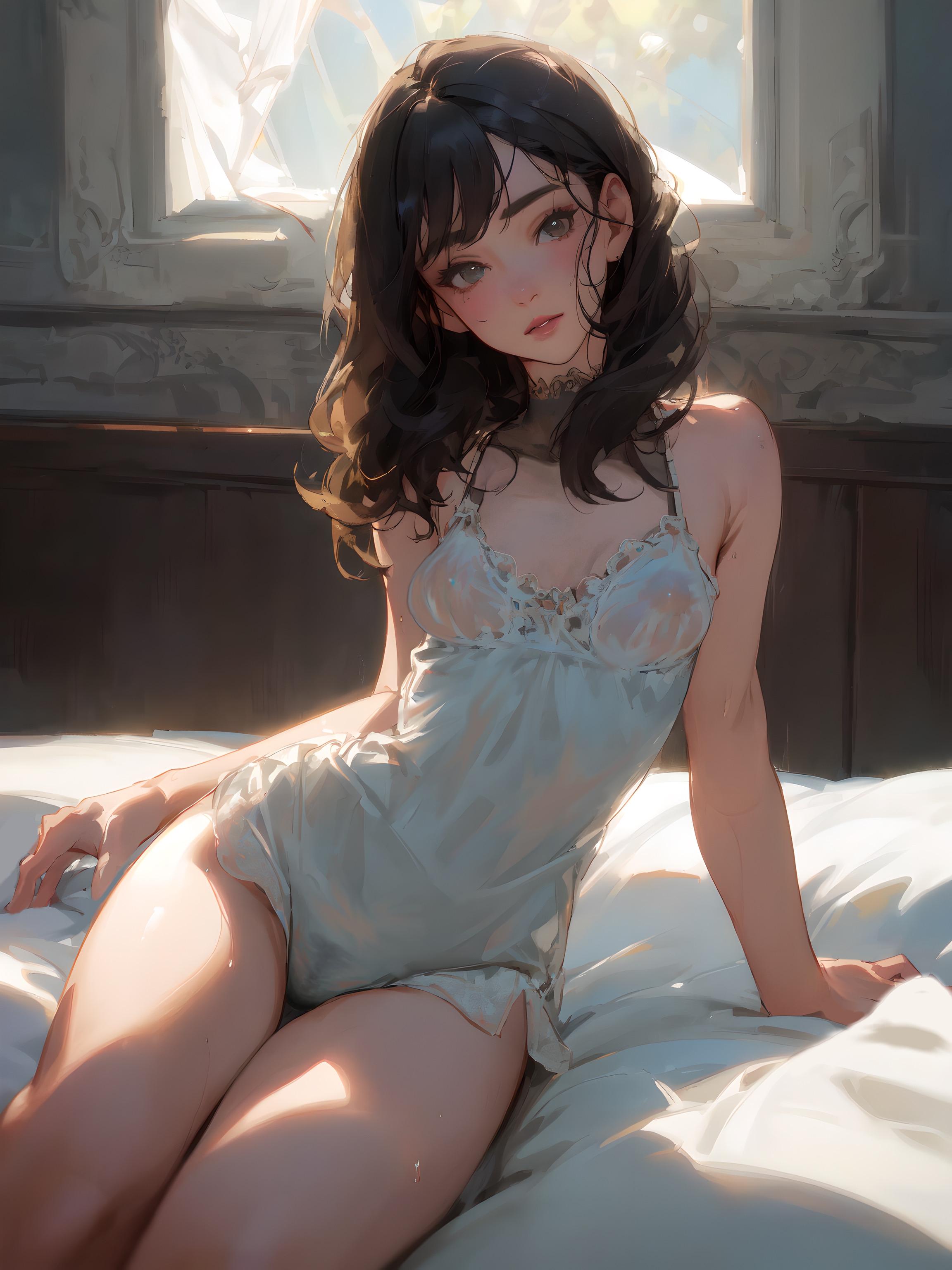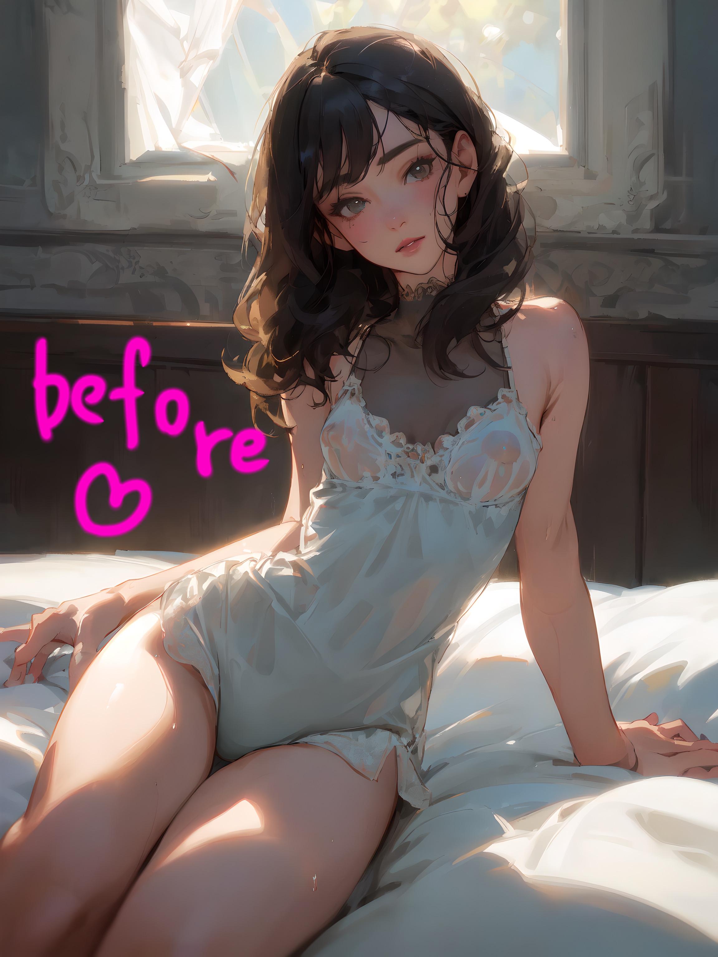 生成画像はnipple感がほとんどないのでnipples をいじり、調子に乗って透け感アップしてアンダーヘアも透けさせたりw楽しくてつい。