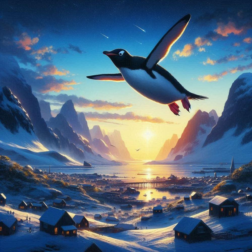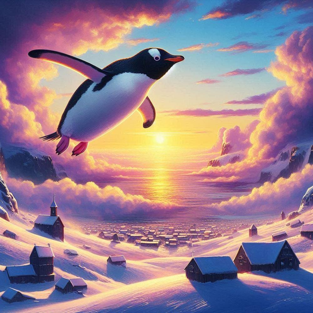 アクリル風 空飛ぶペンギン