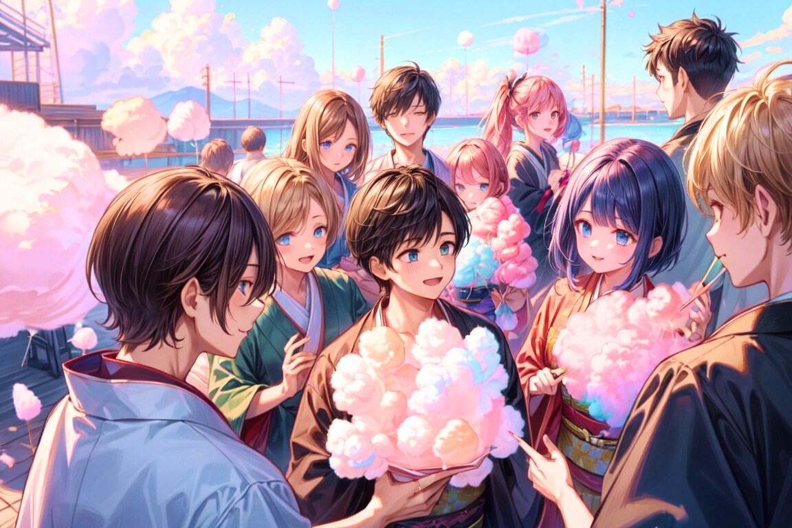 では、わたあめをみんなで食べようとする、レトロモダン街の少年少女をご覧下さい★