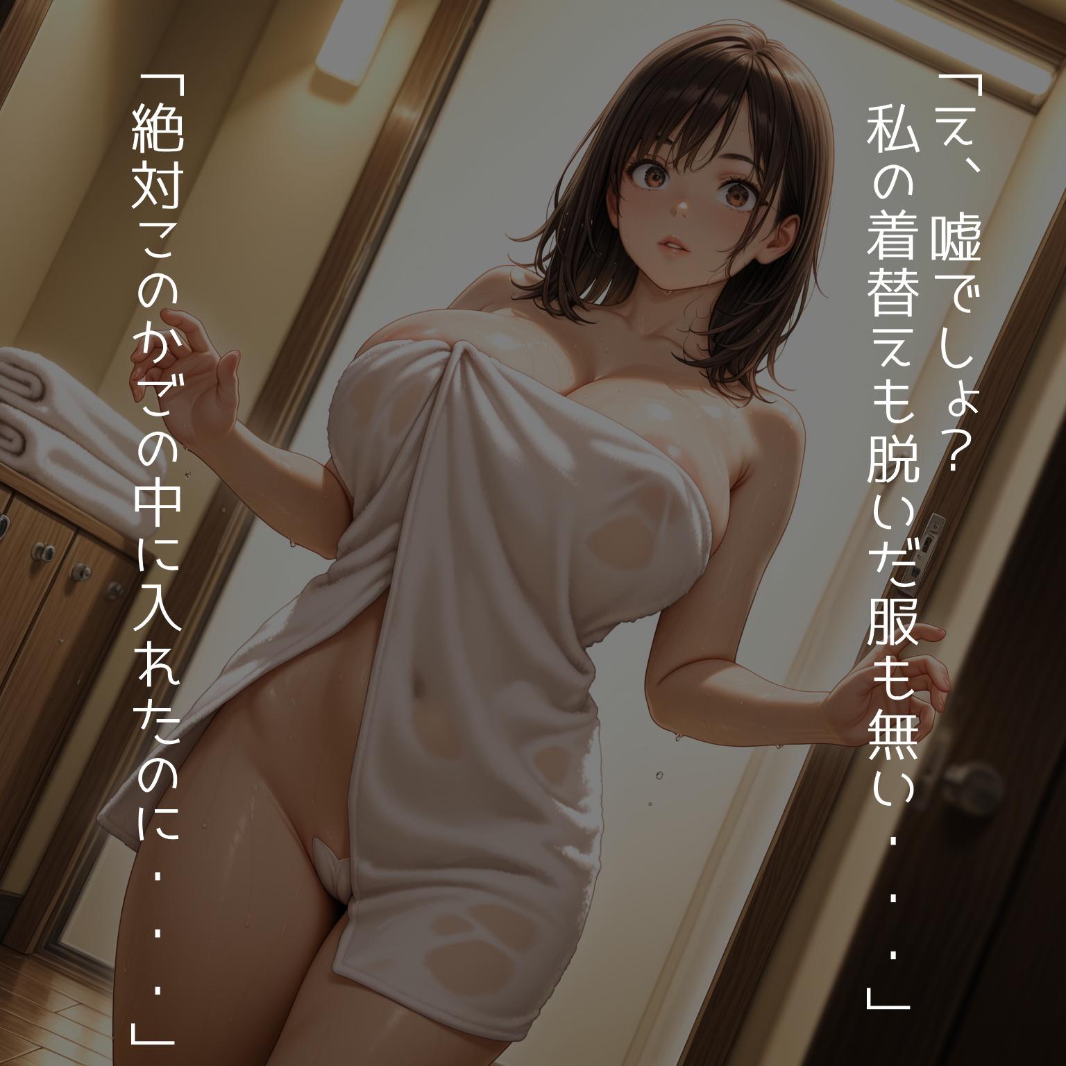 1・2枚目:温泉を出て着替えがないことに焦る委員長