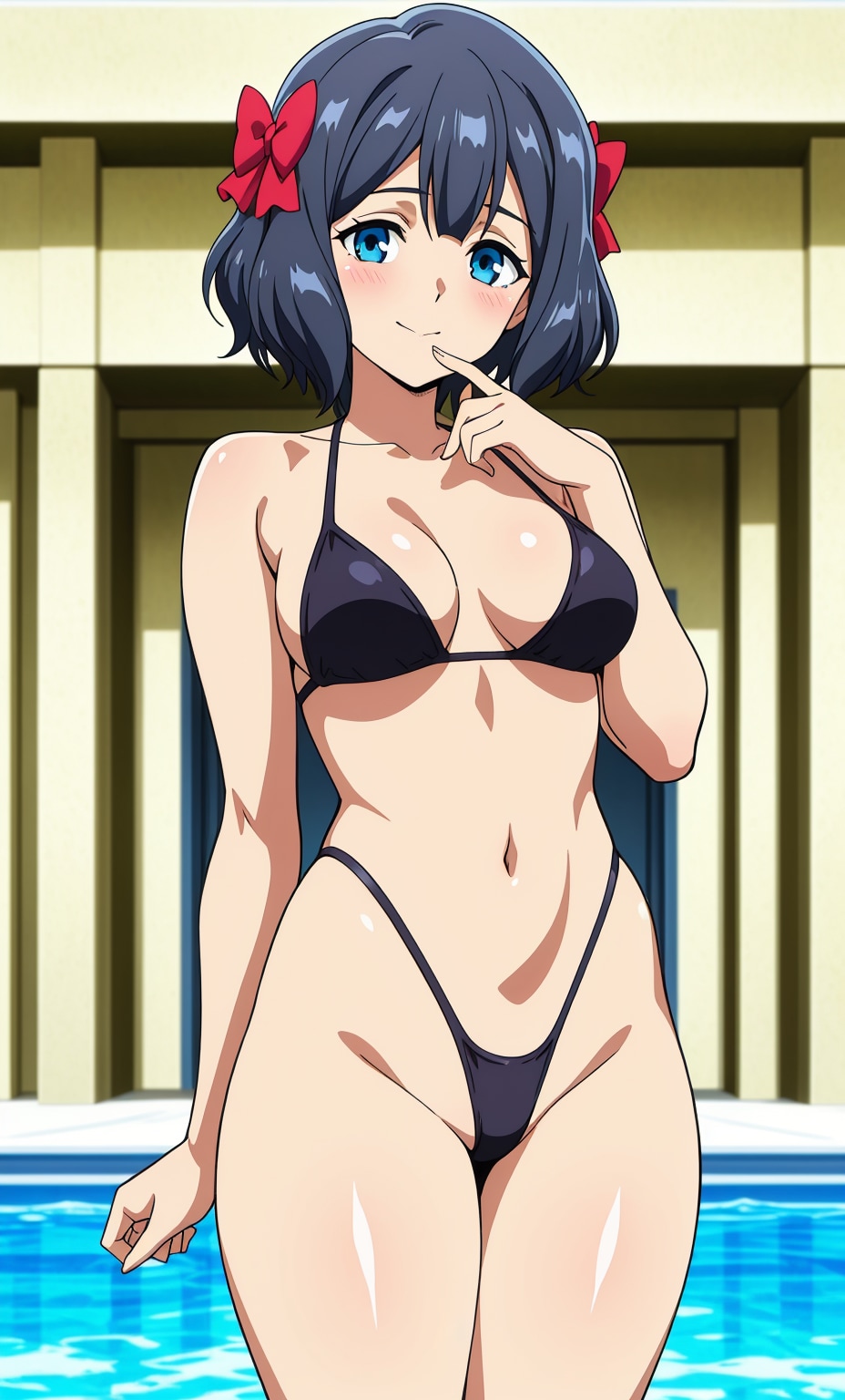 この日の為に用意した魅惑の黒ハイレグビキニ姿でマスター(クライ)を誘惑するのだが?・・プールに恐るべし狂犬の足音が近づいていて・・😱💦(ナレーション風)。