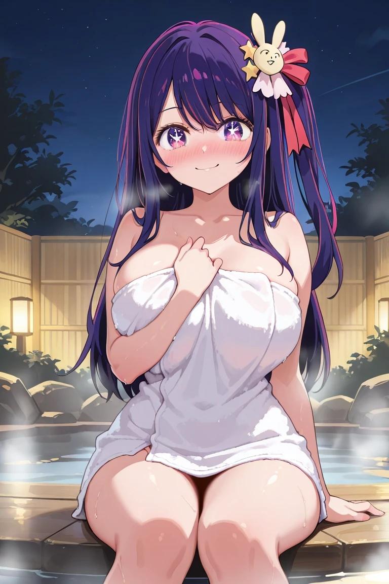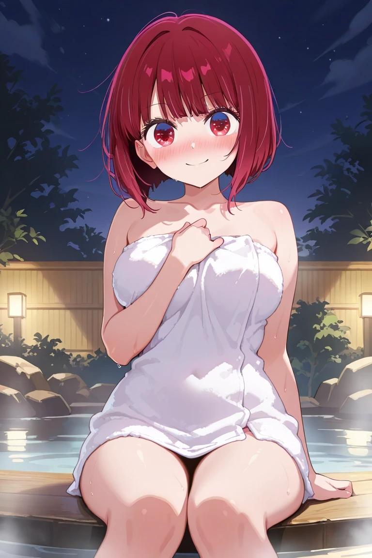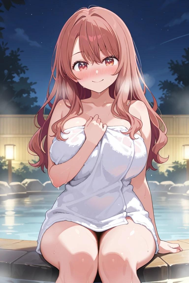 夜は(in onsen)の前に(night)のプロンプトを組み込んでいます。