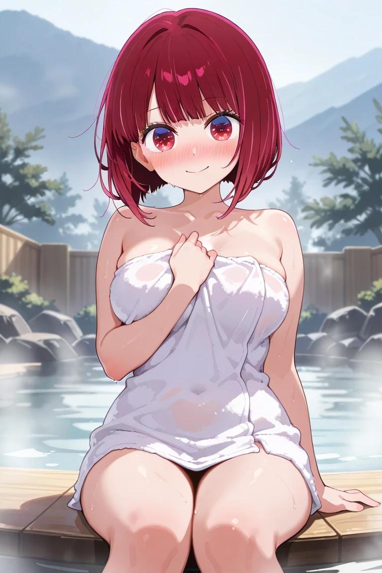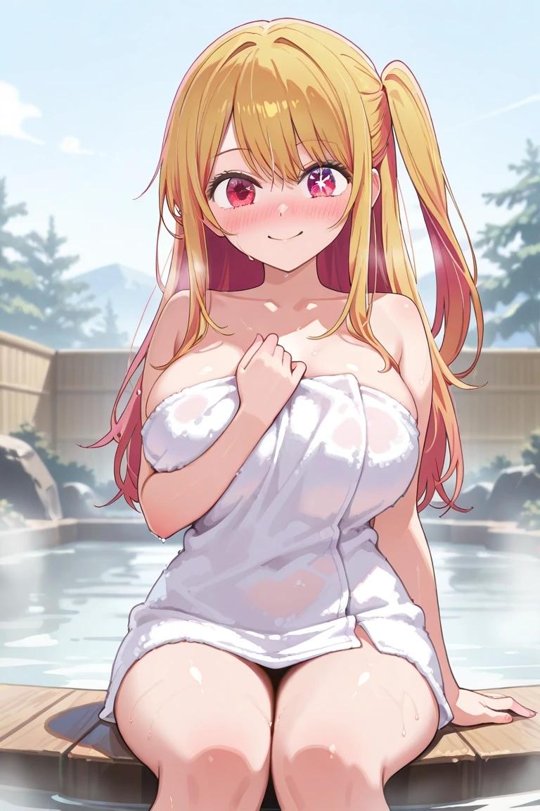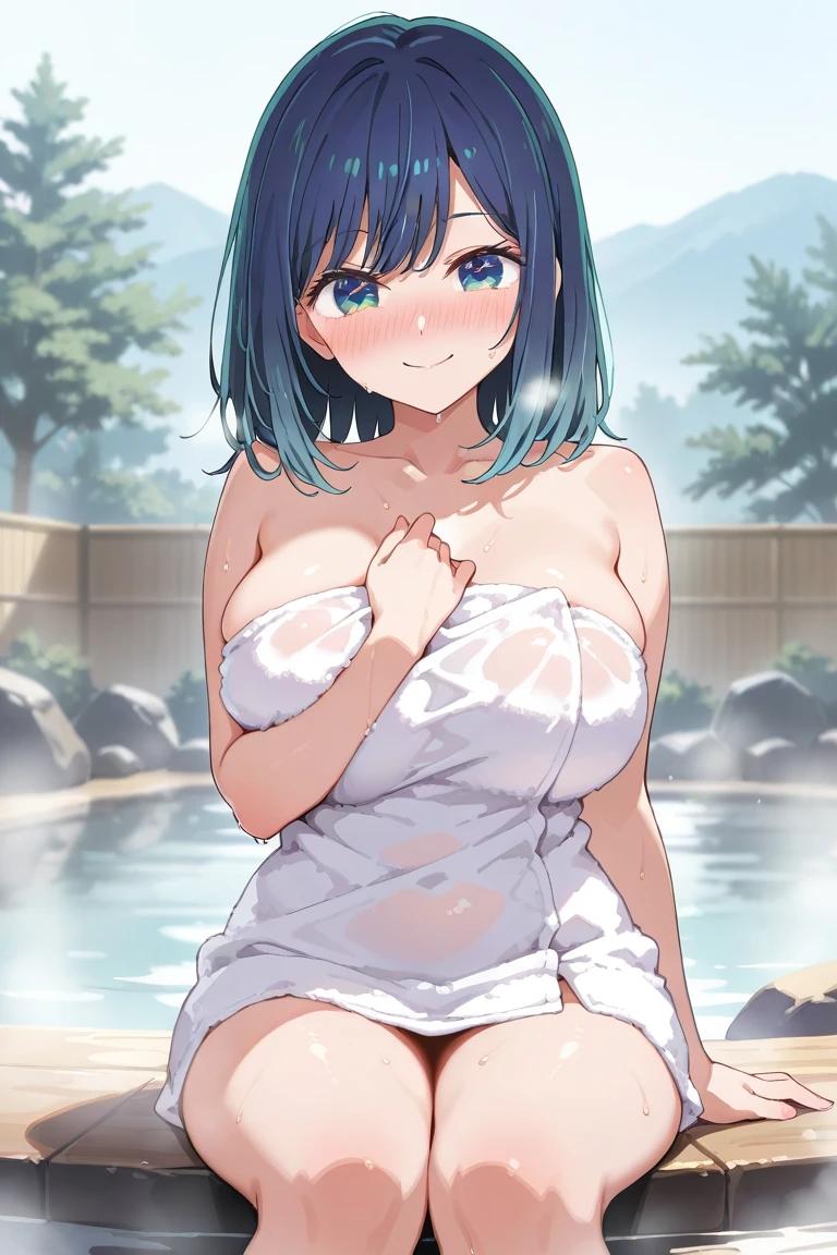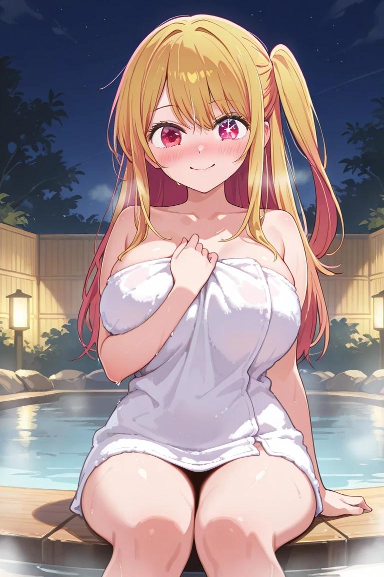 夜は(in onsen)の前に(night)のプロンプトを組み込んでいます。