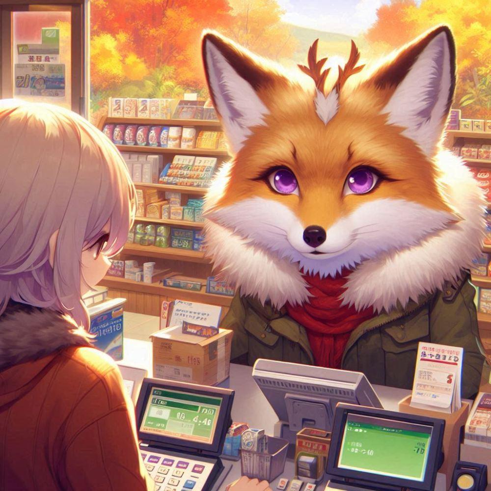 アクリル、コンビニでジト目チベットスナギツネ