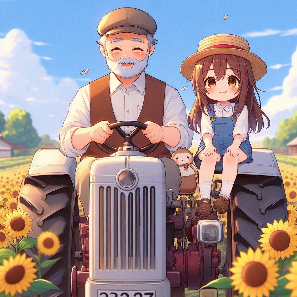 今日も畑でお仕事、トラクターに乗って仕事をするおじいちゃんはカッコいい!