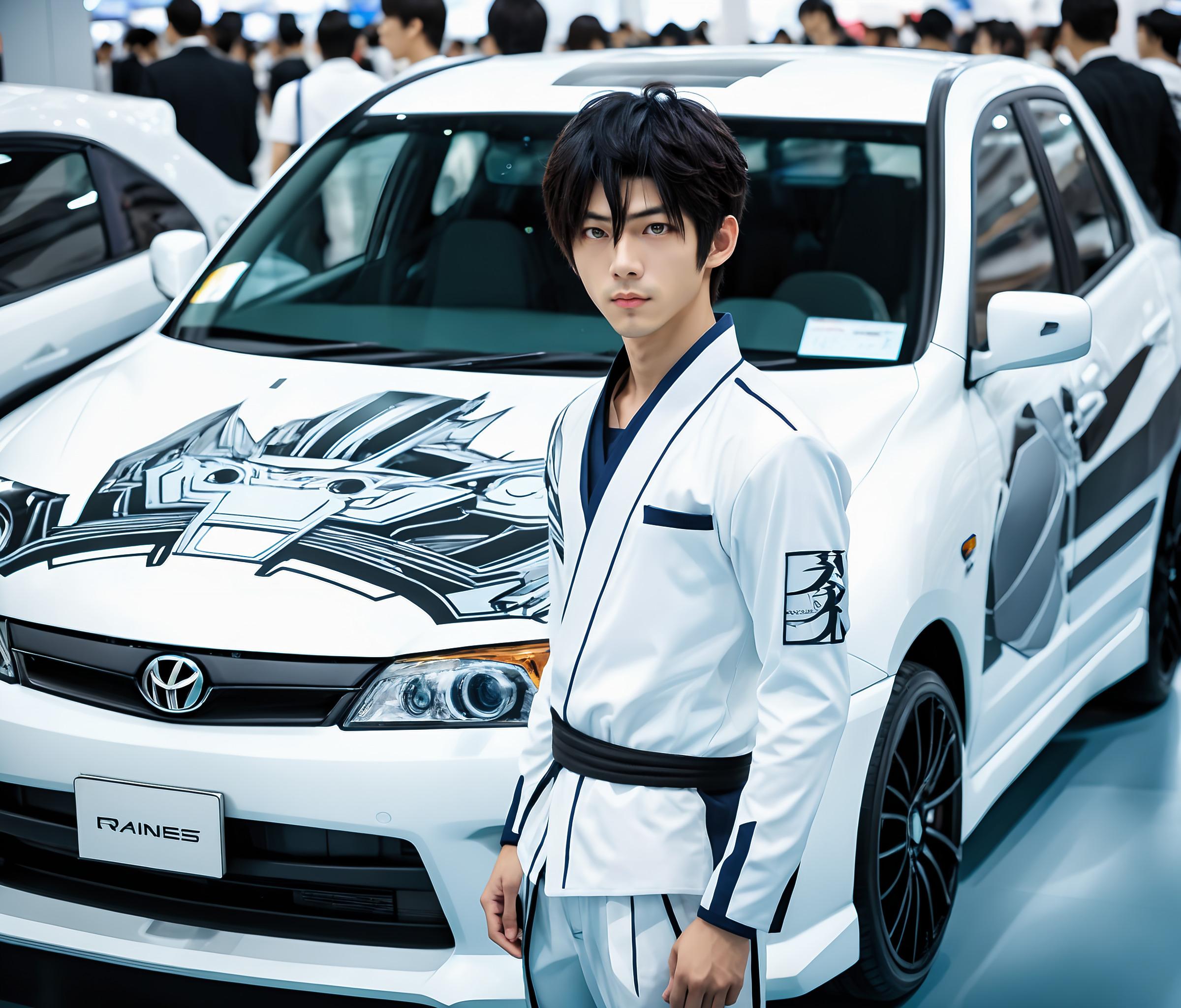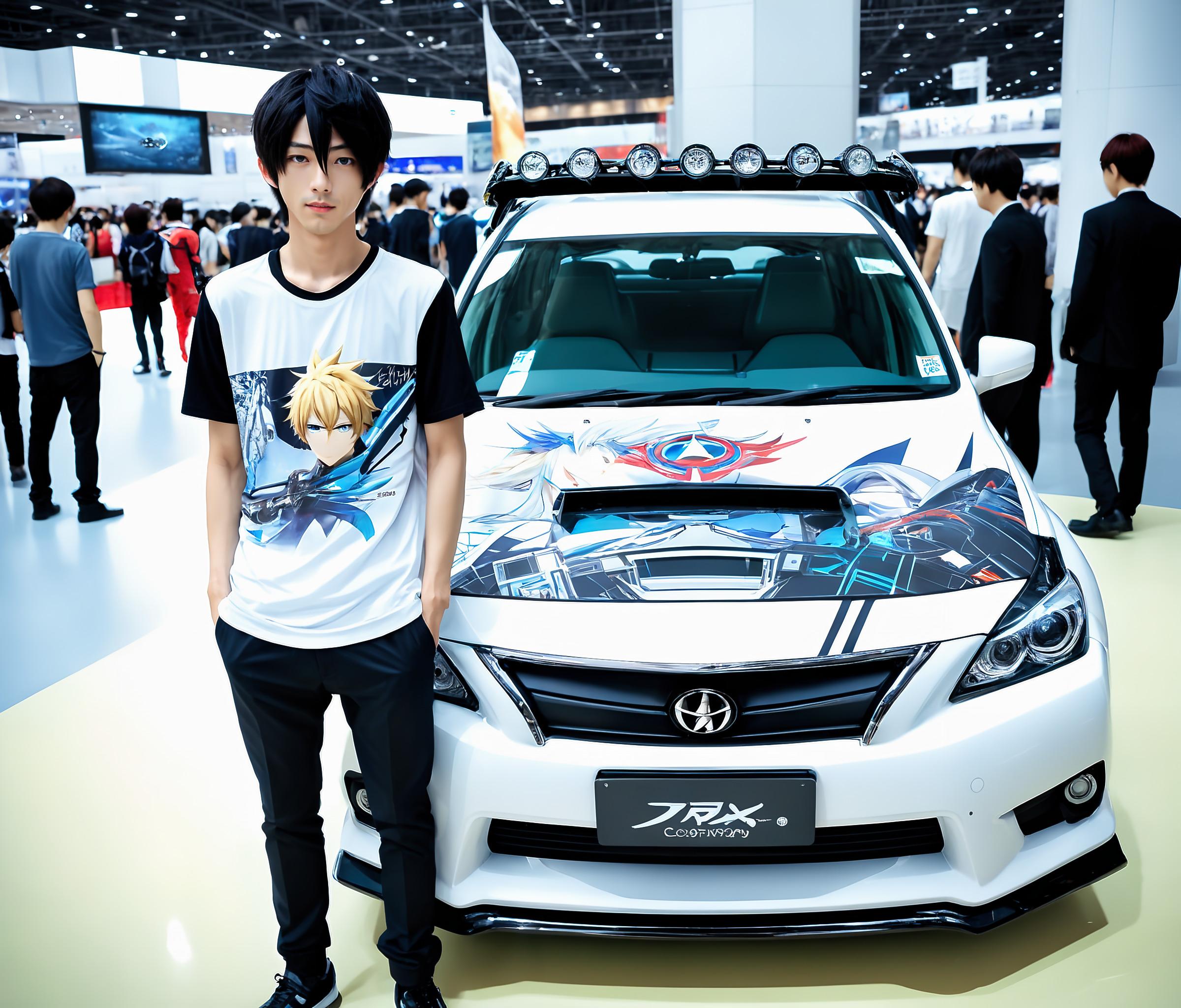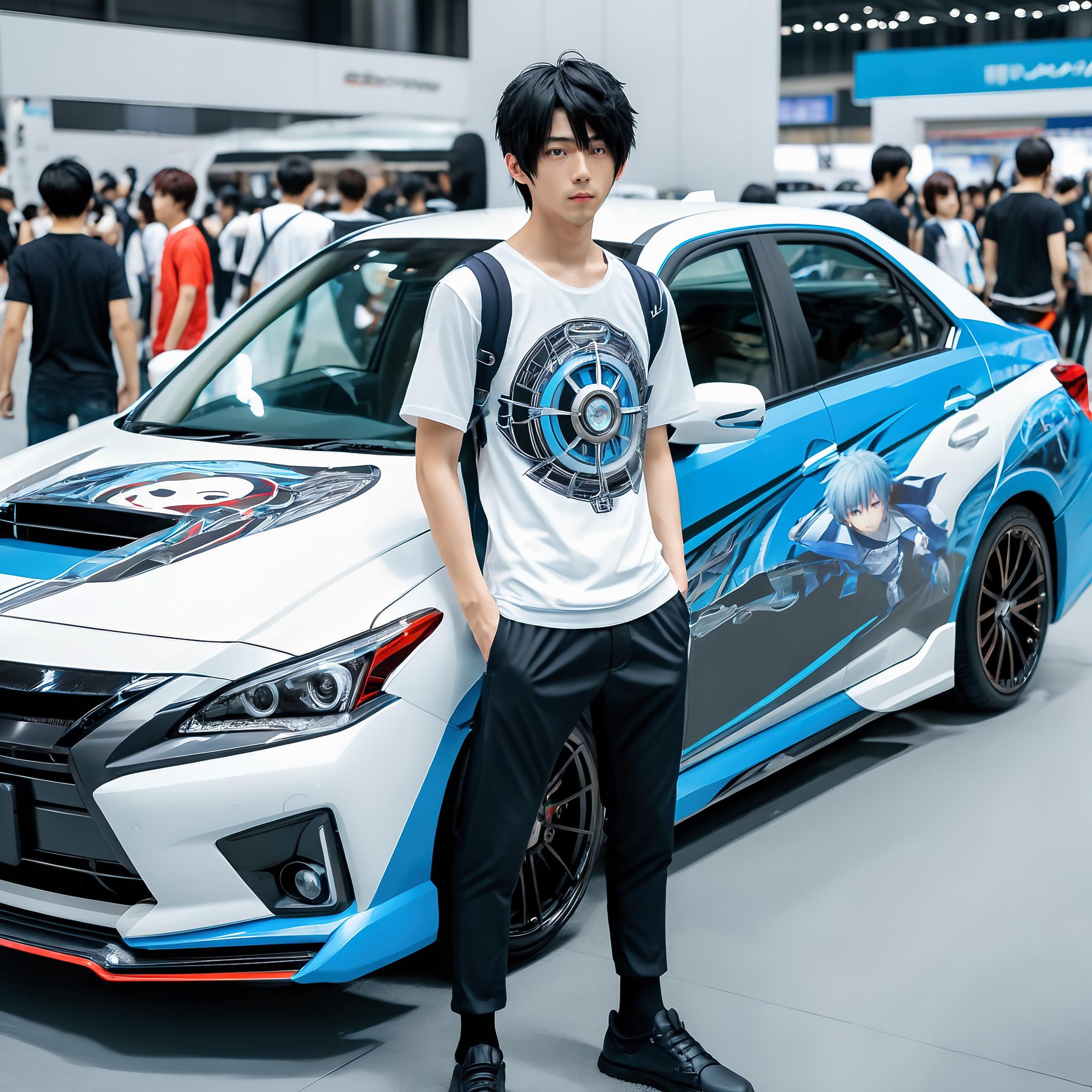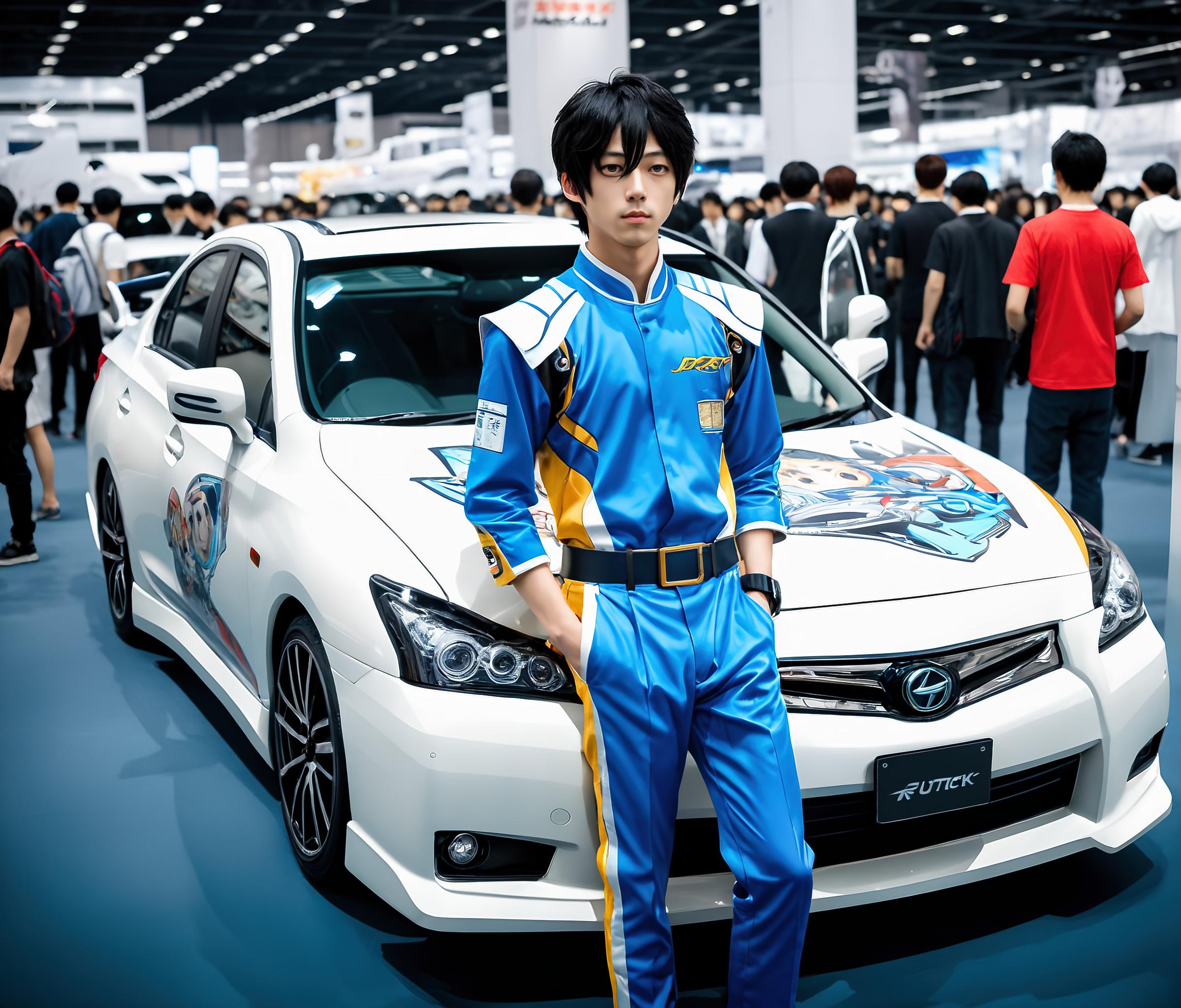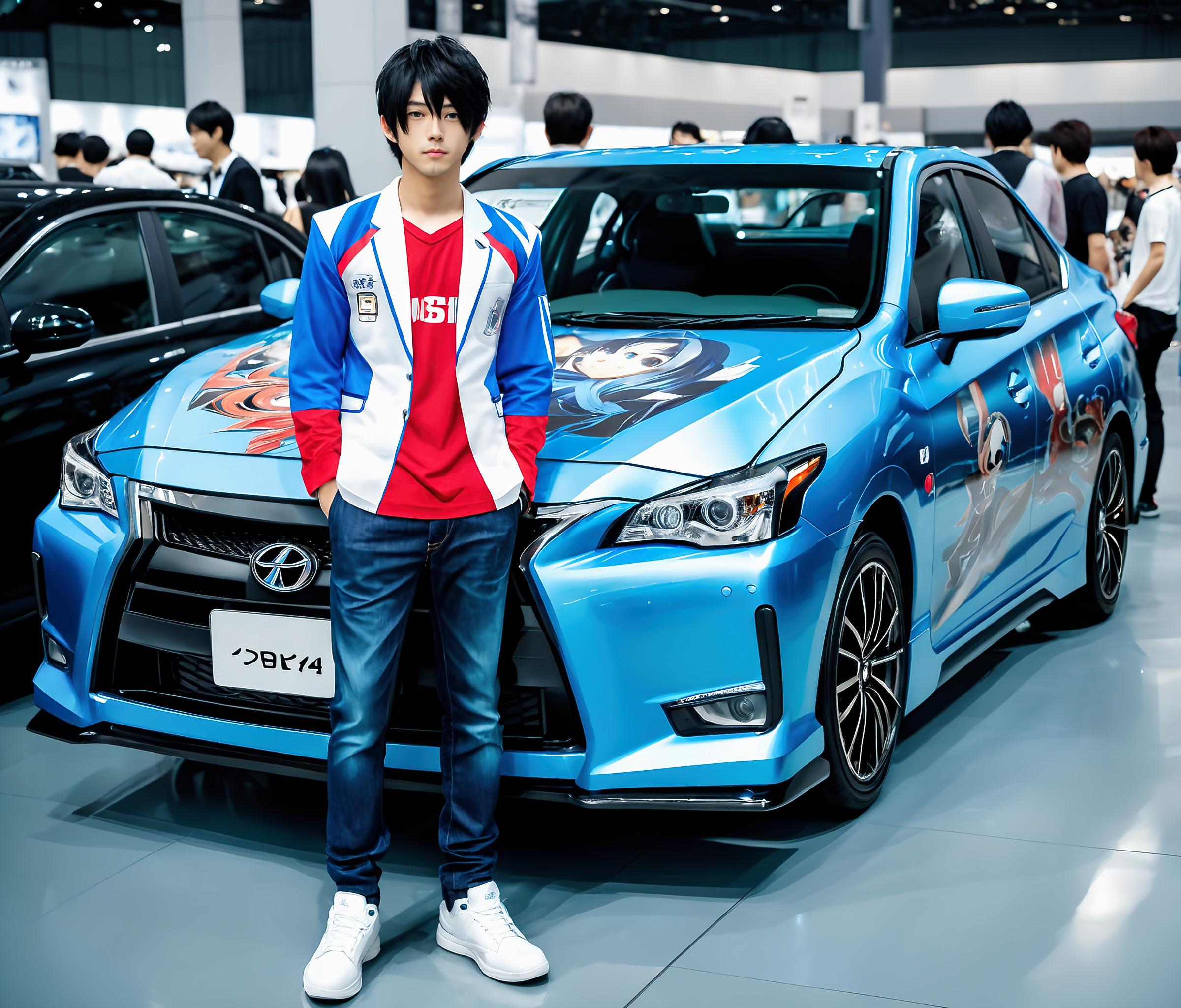 なんのキャラの痛車なのか、立ってる男の子もキャラなのかファンなのかよくわからない絵になっていますが、いつものように暖かい目で見てください。
