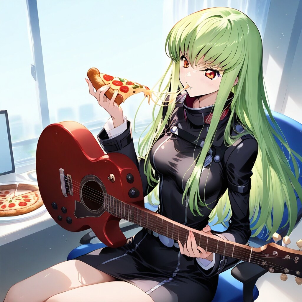 「このピザを食べながらベースを弾いてるメイドのポスターを見てきたんだが……なに? 授業料としてこっちがピザ一枚を出さなければならないだと?」
