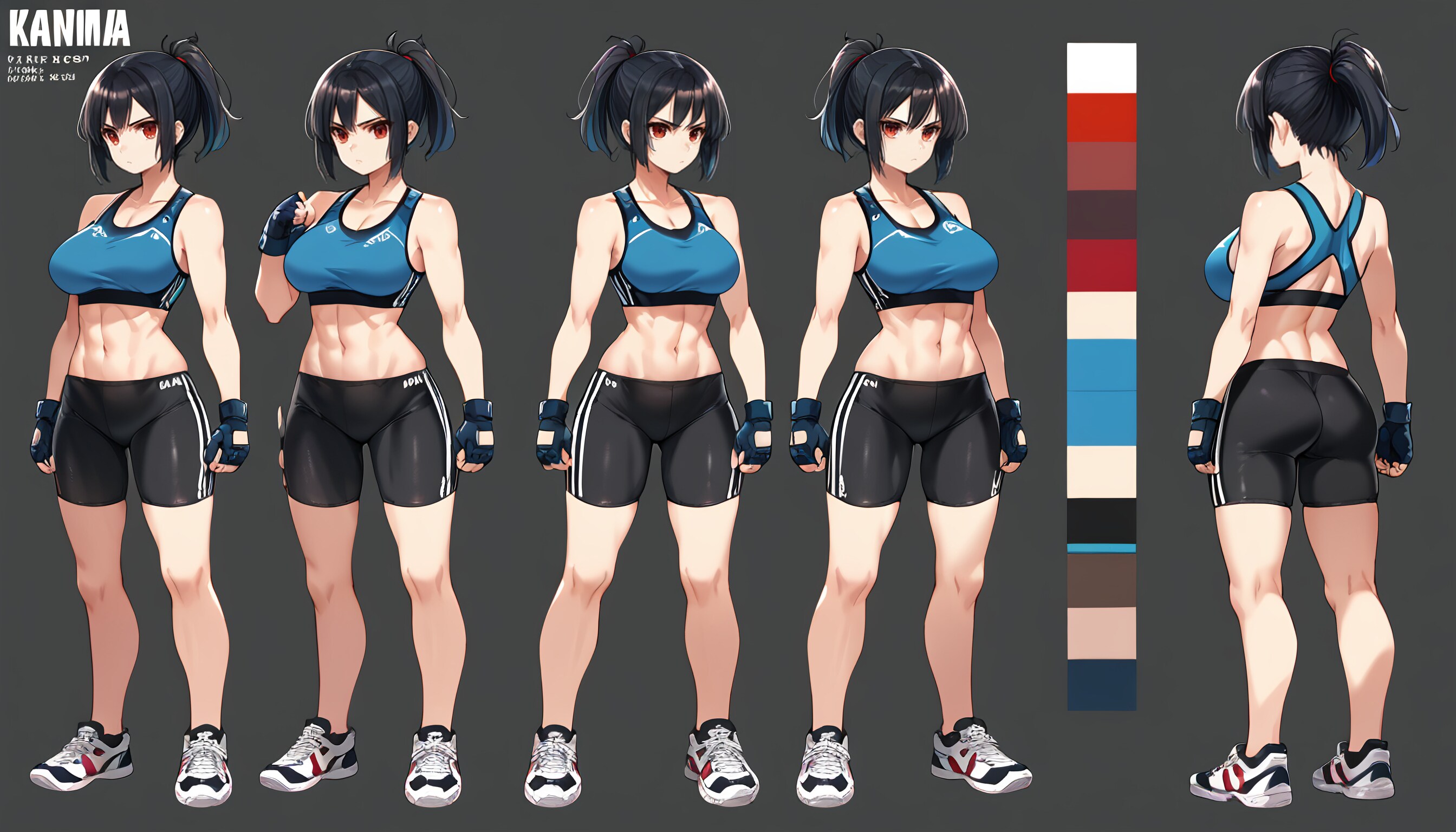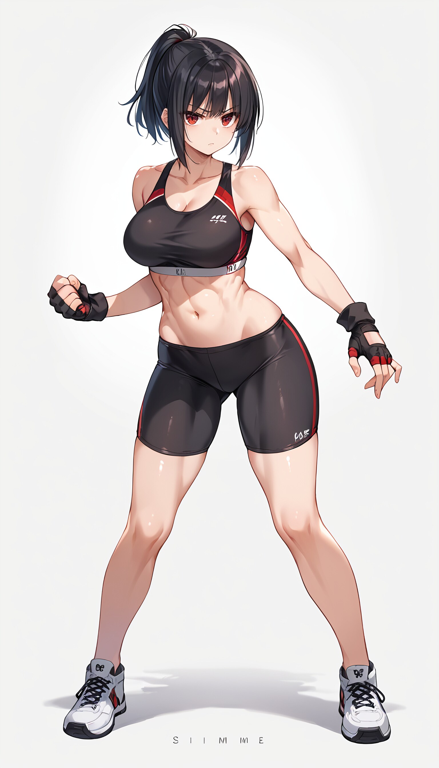 腹筋:これは結構綺麗に出る。バキバキすぎず、ちょっと脂とか女性的な丸みが乗ると健康的振り切って叡智になるので、奥深いよね。なお格闘娘ちゃんは叡智寄り。