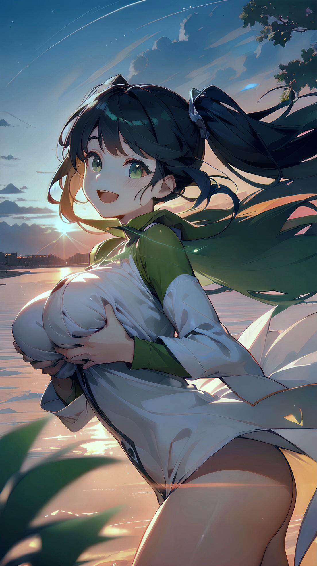 になります..緑髪は黒髪ツインテールに..緑の光学効果は髪の一部やワイシャツの一部になっていますね💦💦