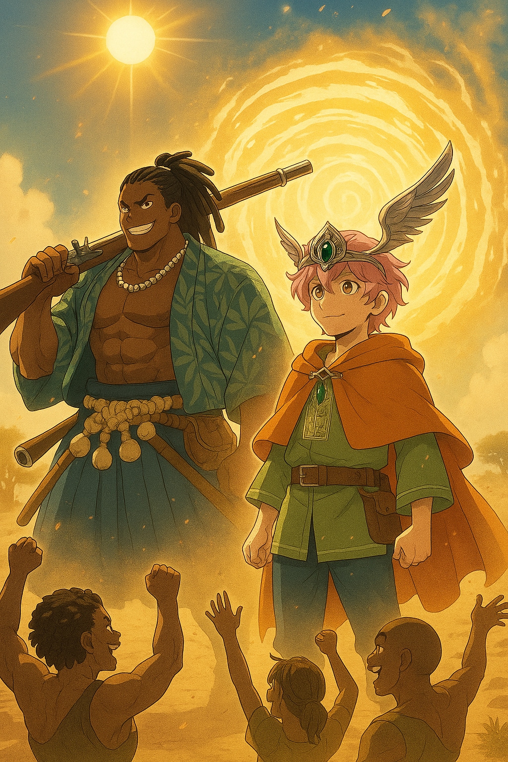 暗黒大陸、ヨハネス村に響く歓声。駆け寄ってくる、元難民の村人たち。