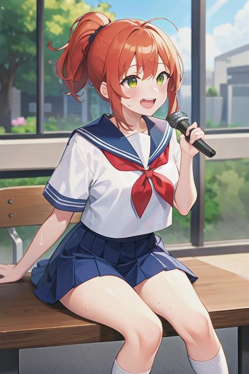 アキナ「ありがとう!お客さんも盛り上がってるね。みんな文化祭楽しんでる?文化祭楽しいよね。みんなで出し物をやったり、お化け屋敷やったり、メイドカフェやったり、焼きそばとか作って持ち帰ったり、制服のお姉ちゃんお持ち帰りしたり・・」