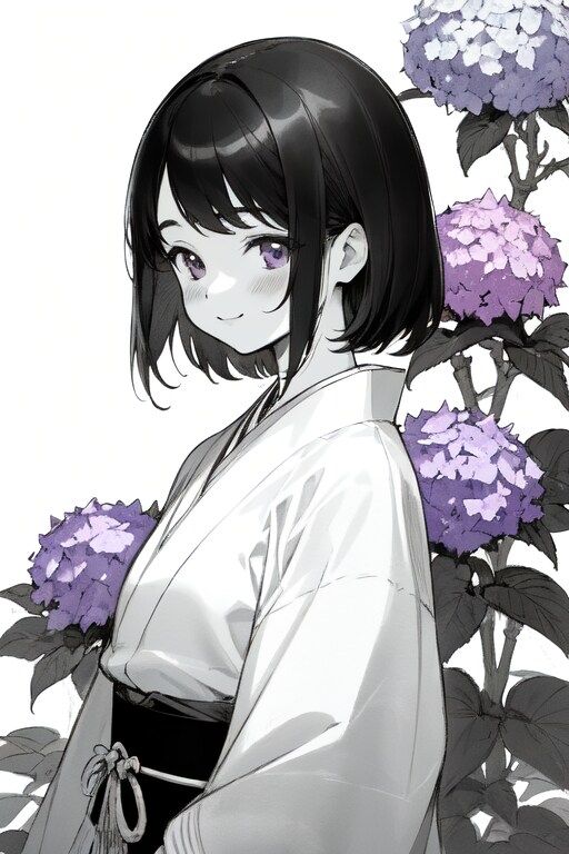 えー、今日は早咲きの紫陽花を背景にした、水墨画的な凜ちゃんです。