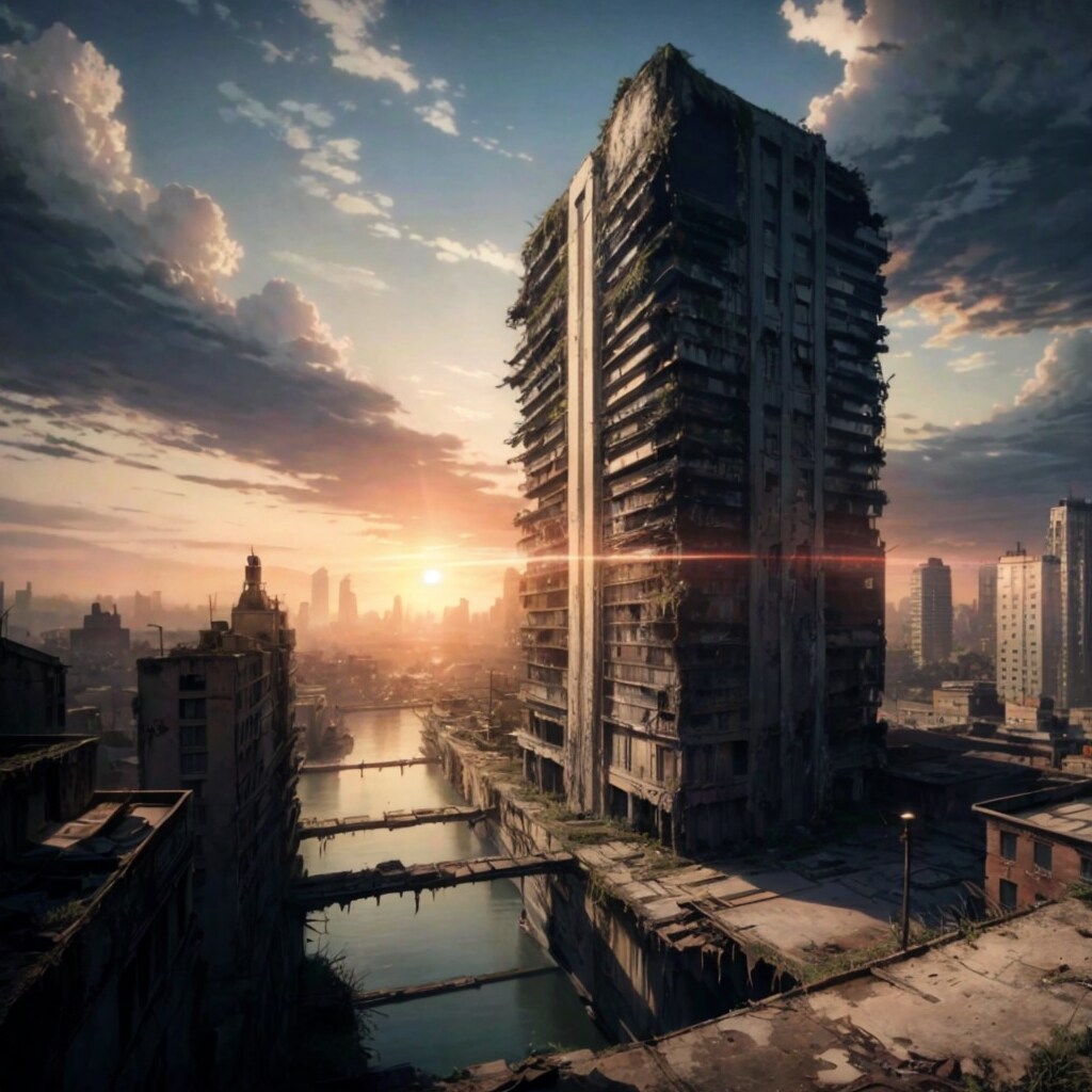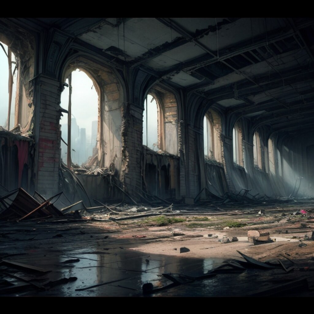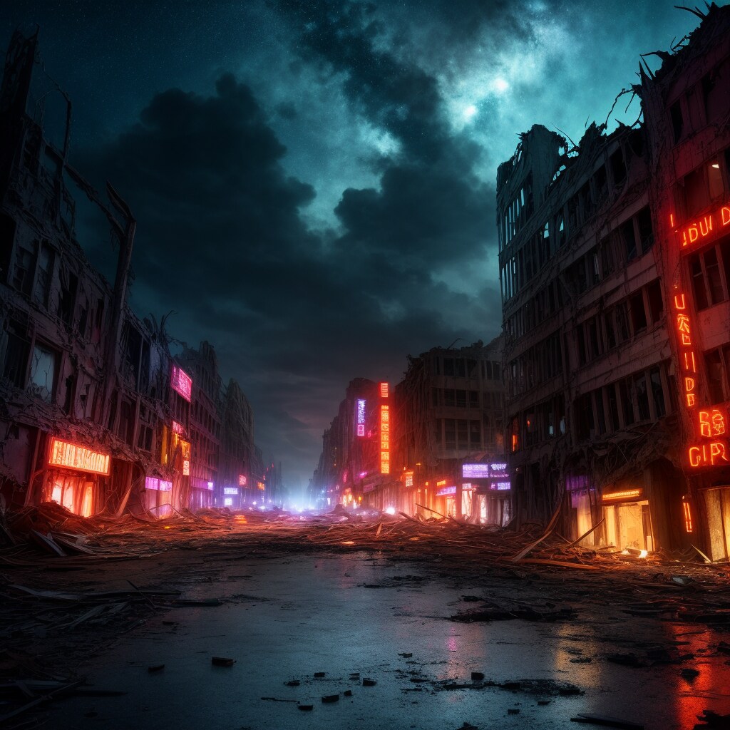 荒廃した繁華街(電力等のインフラは人工知能による業務の自動化によってある程度は供給されているという設定)が好き。