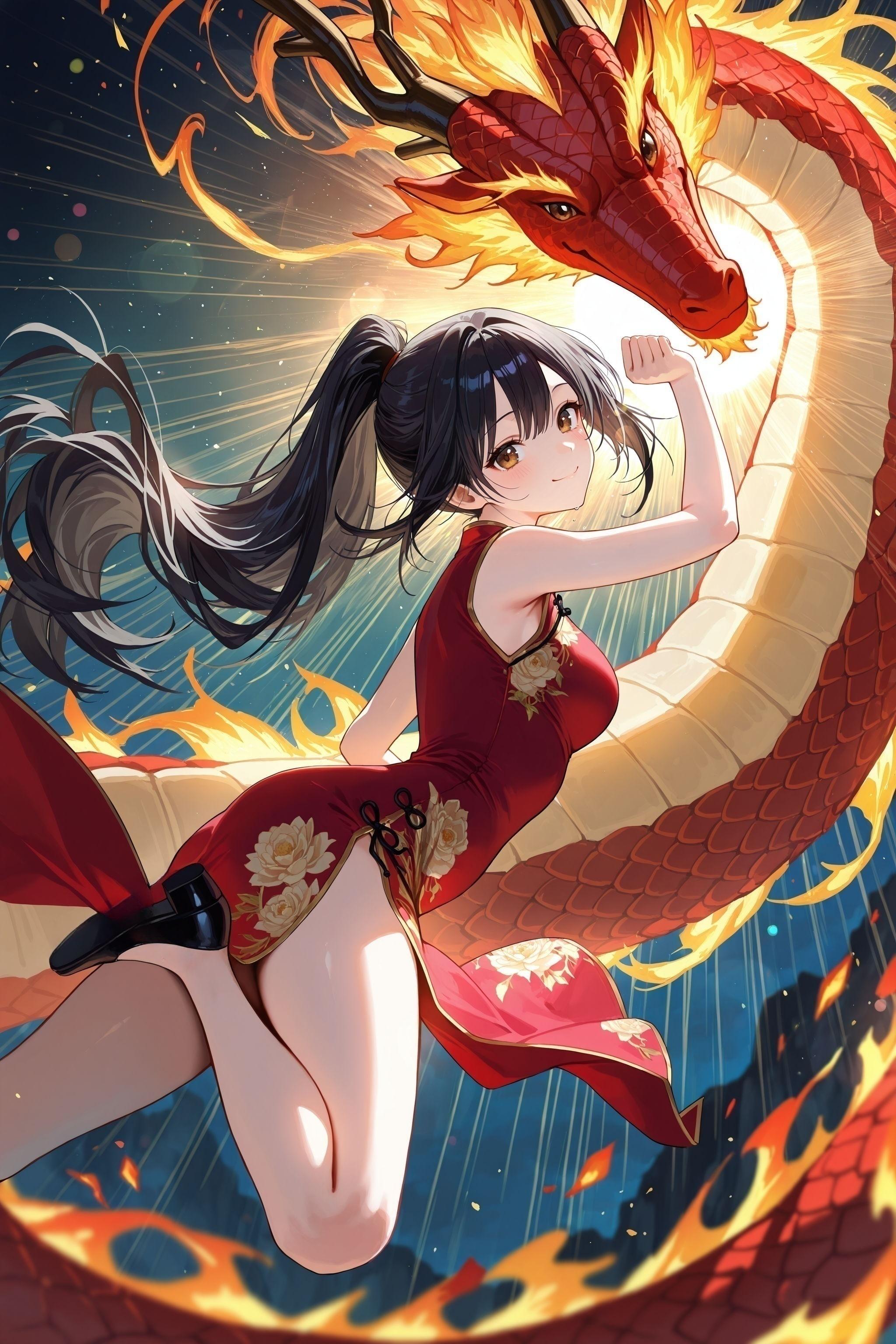 ドラゴン使いの少女(美龍さんと火竜サラマンダーさん)