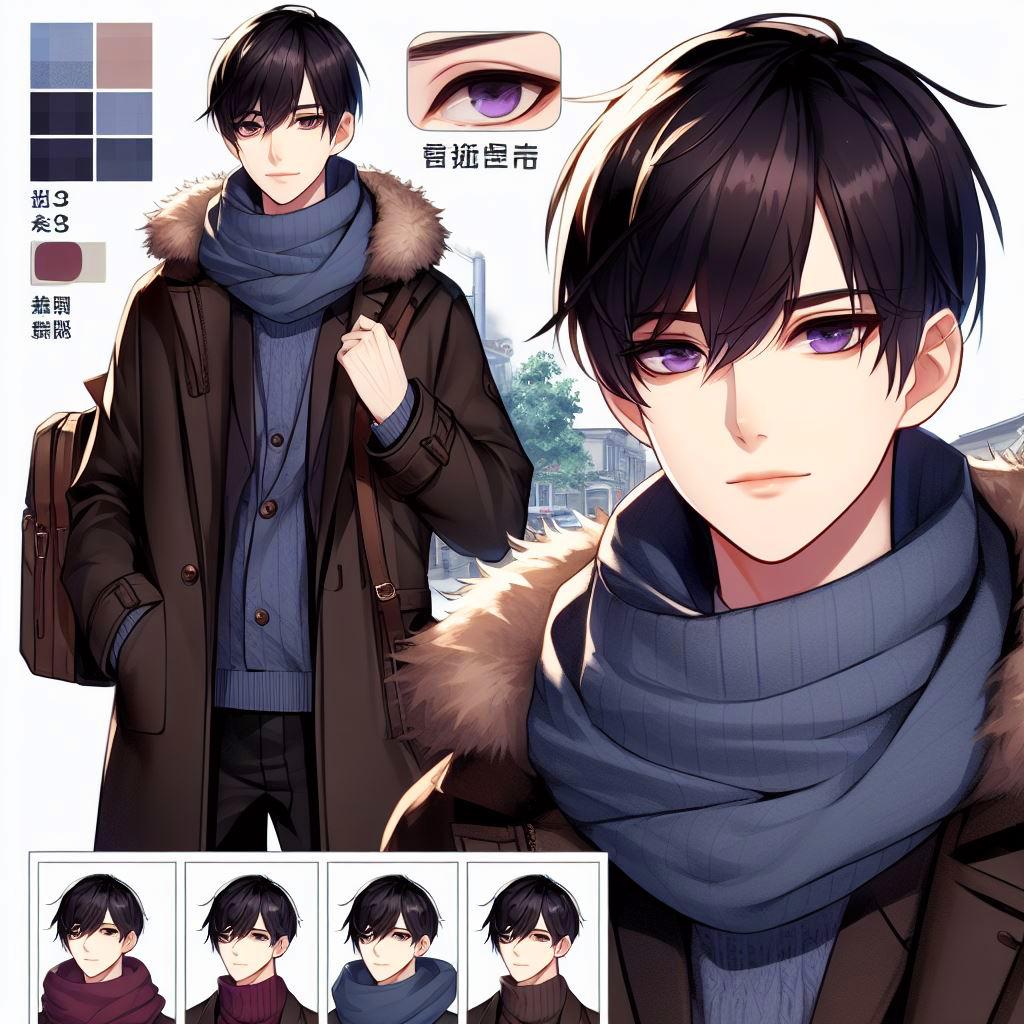 黒髪短髪男性の冬ファッション設定画(6枚)