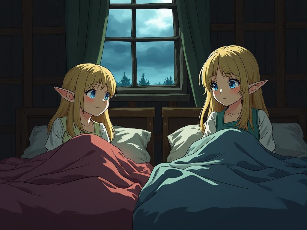 万一に備えクワンダは隣室へ、シャルロッテとエルルは相部屋。