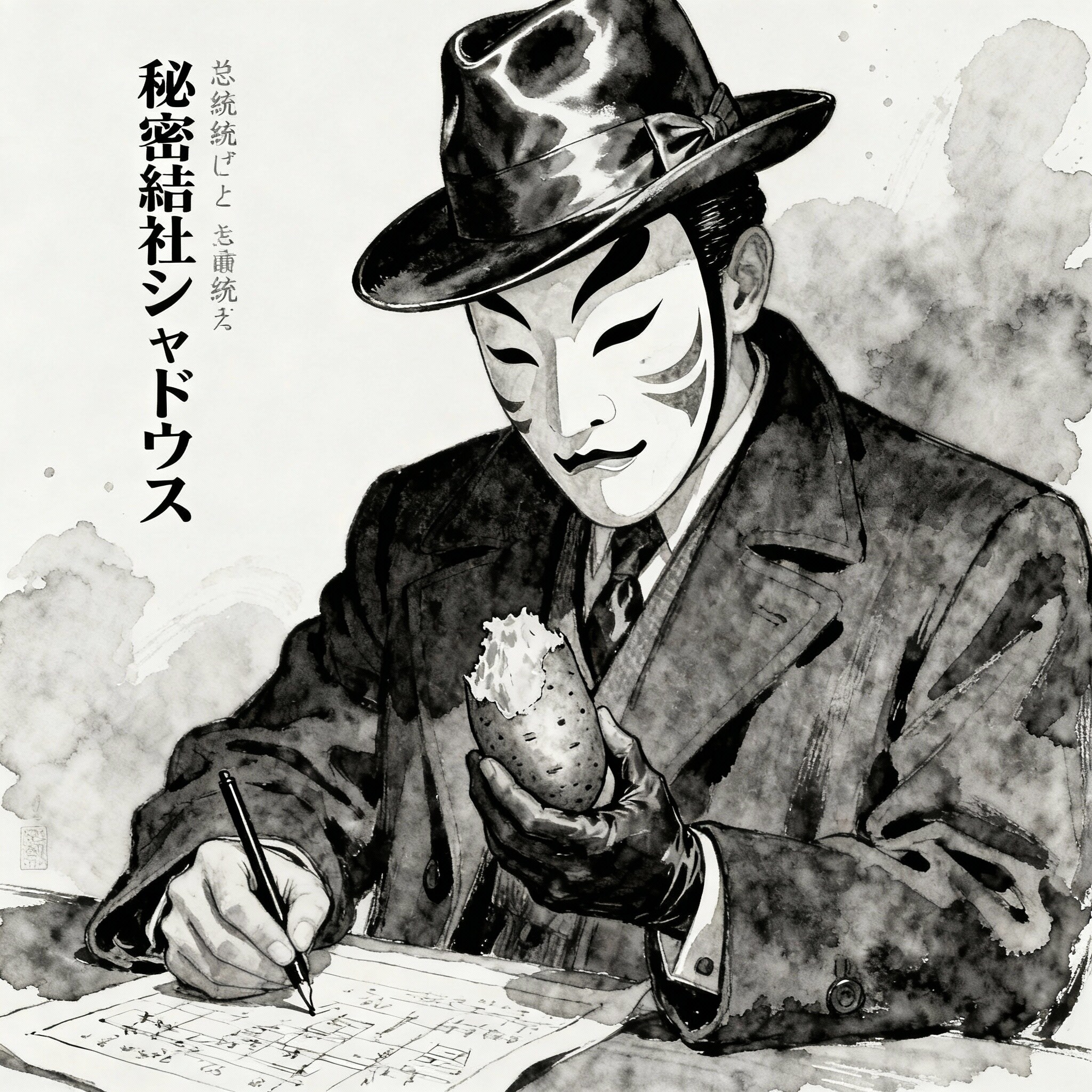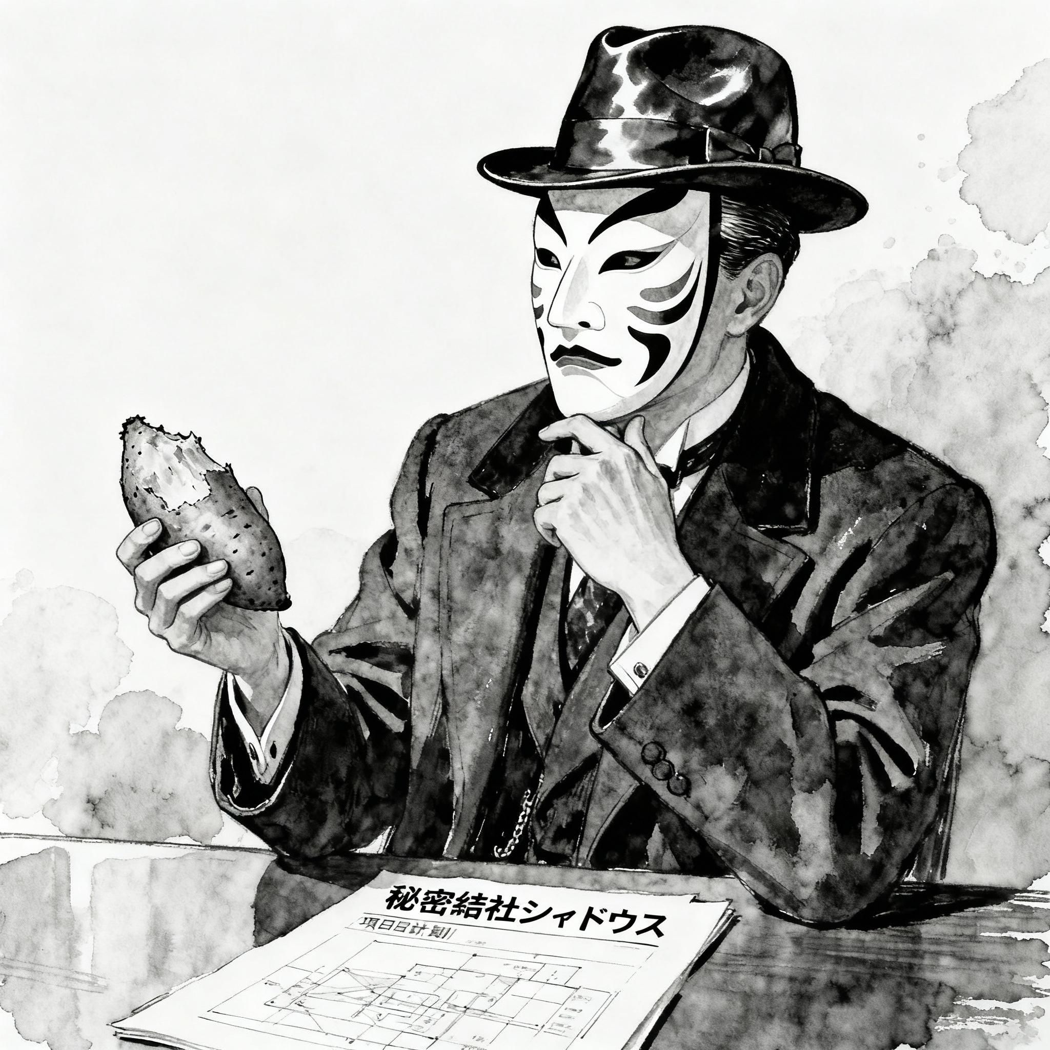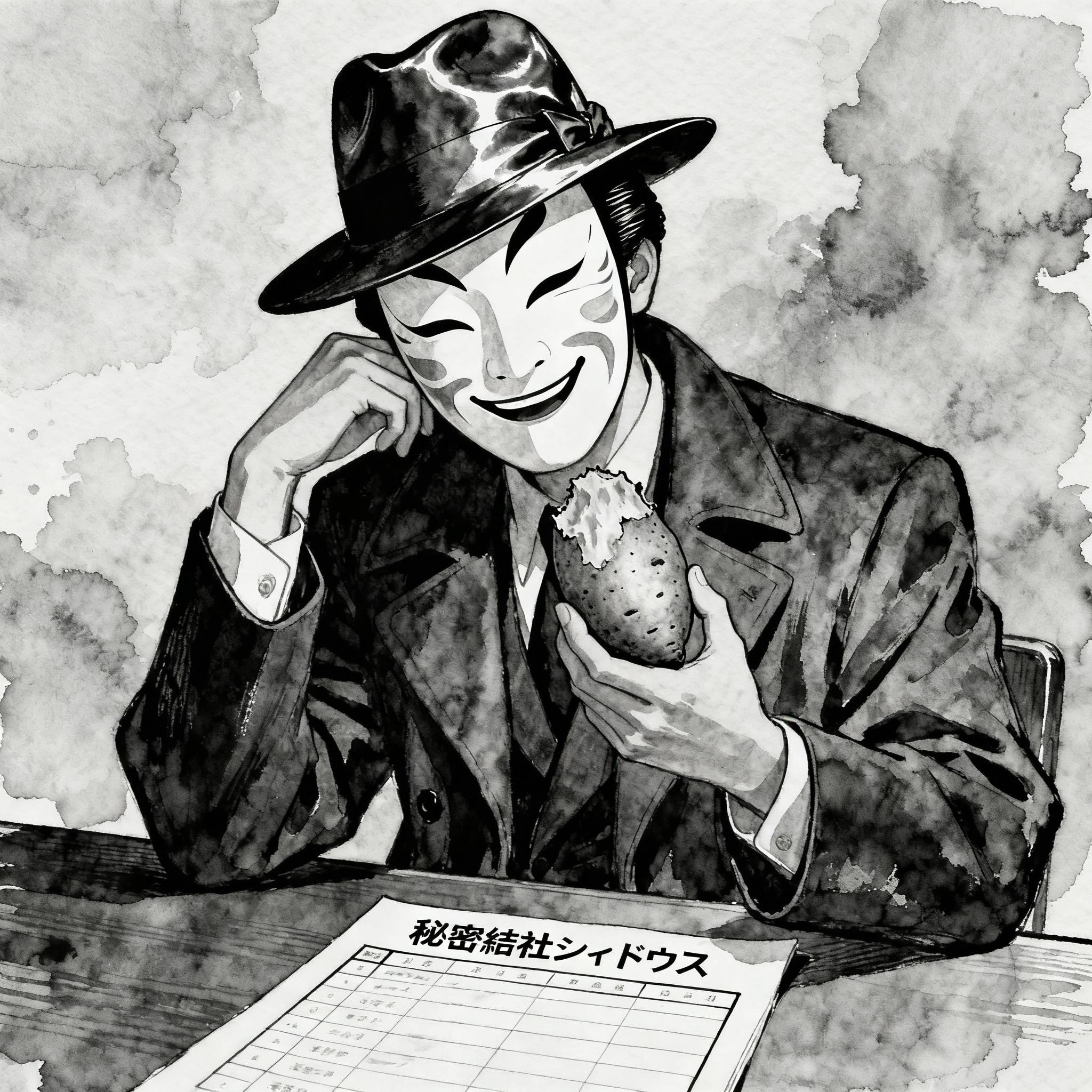 焼き芋と秘密結社を同時に取り入れるなら、ロゴが一番だろうと、