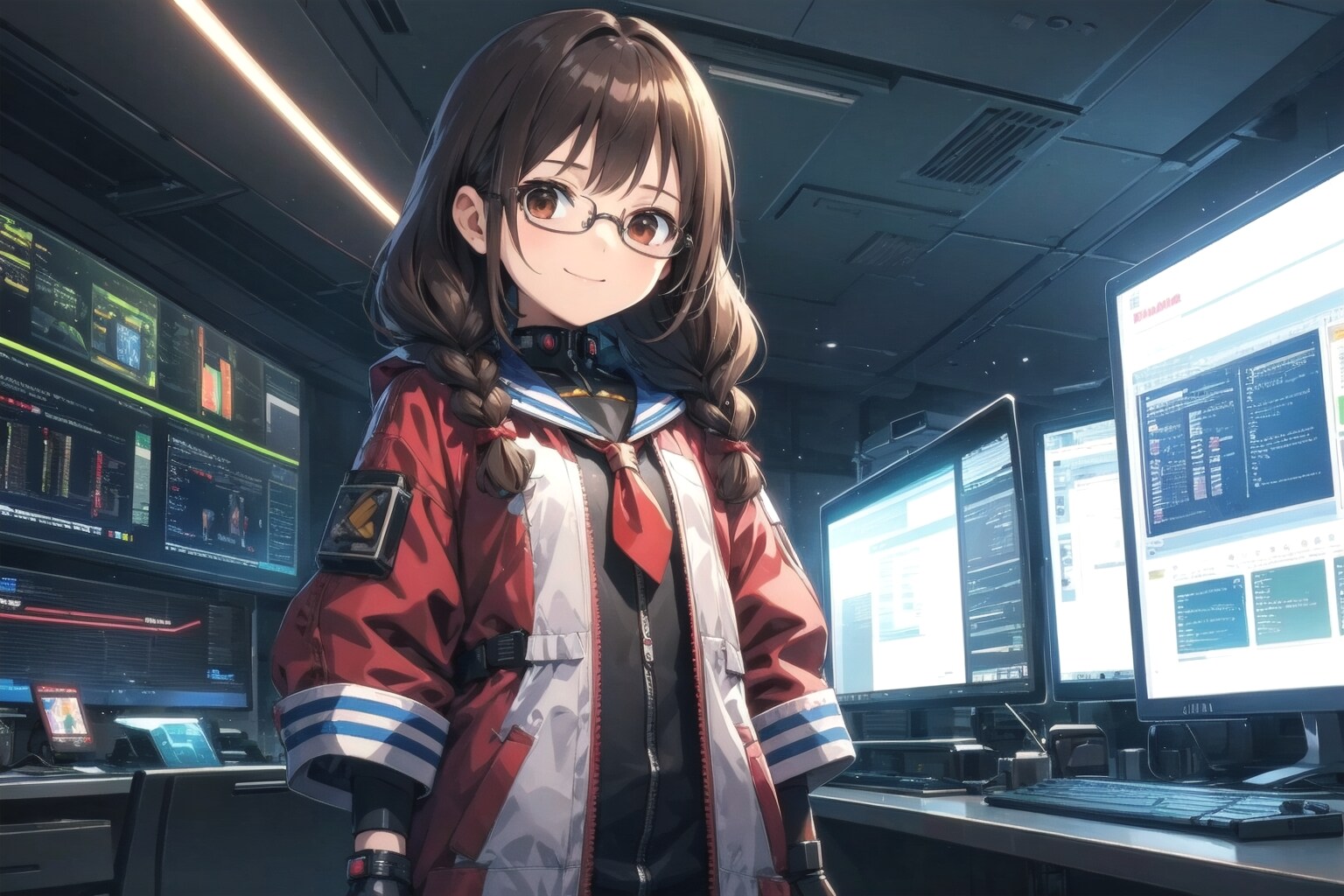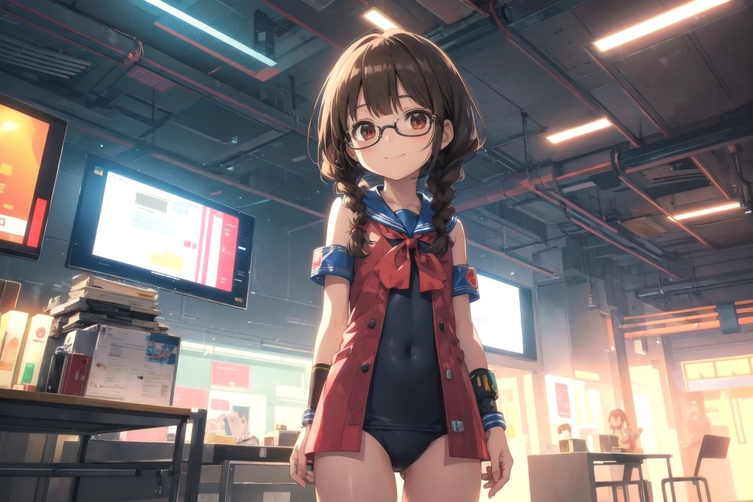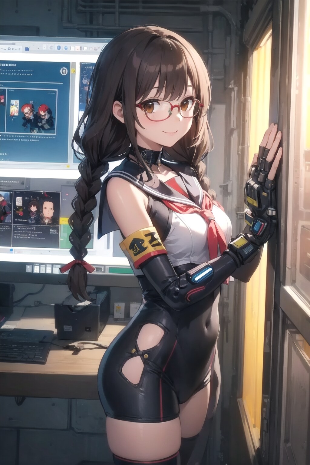 サイバーパンク自体どういうものかよくわかっていない中、「委員長ちゃんの中のサイバーパンク的世界」として画像を上げてみました。風景画の方がかっこよく、またそれでも良かったのでしょうが一応「眼鏡三つ編みっ娘好き」を標榜しているので眼鏡三つ編みっ娘は出さないといかんでしょう、ということで(苦笑)。