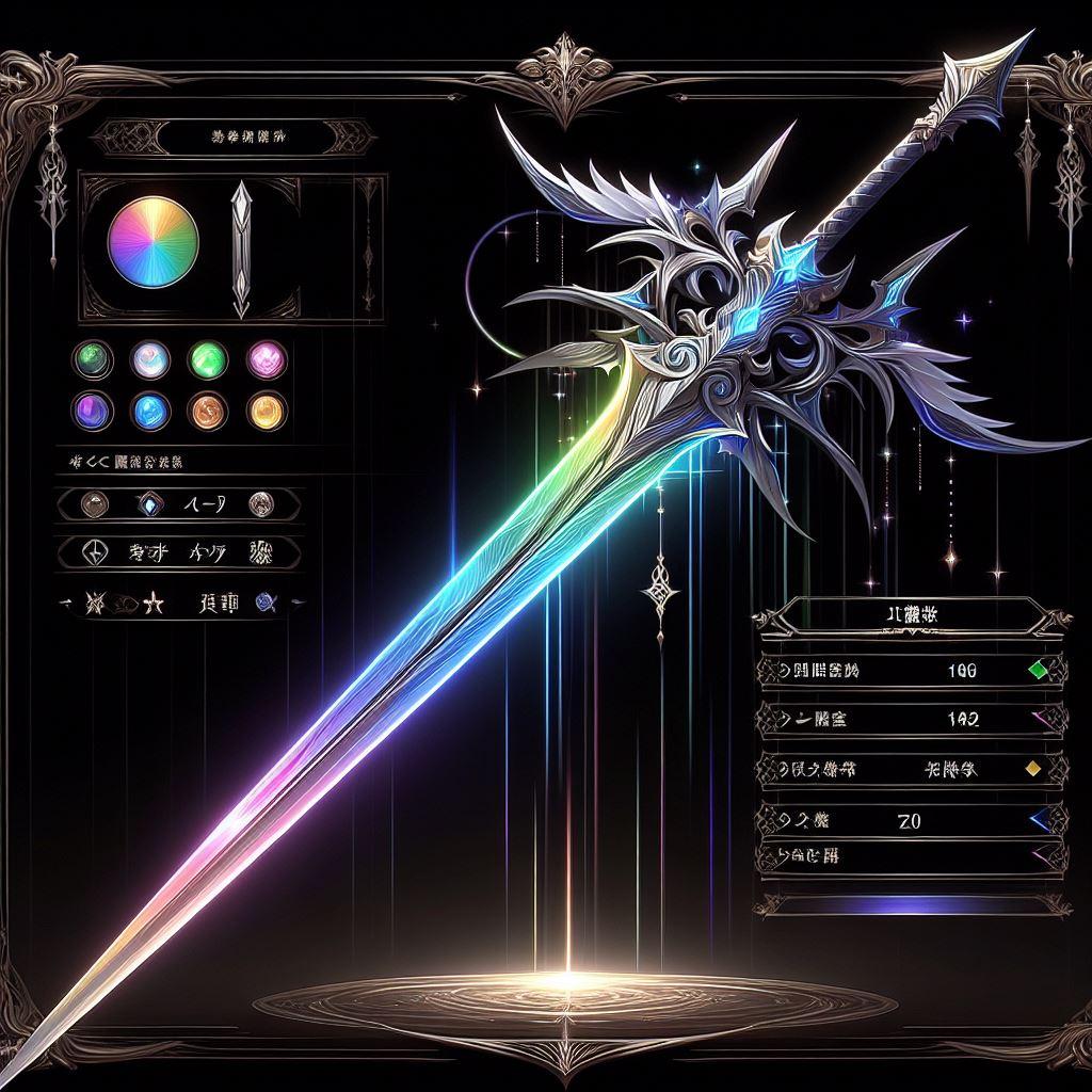 虹の力が込められた伝説の剣。刃は通常の両手剣よりも遥かに長く、そして重い。