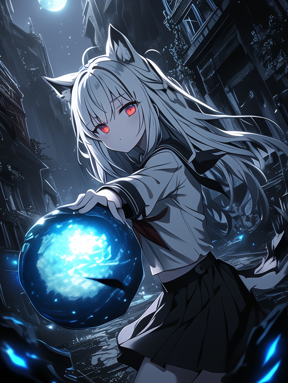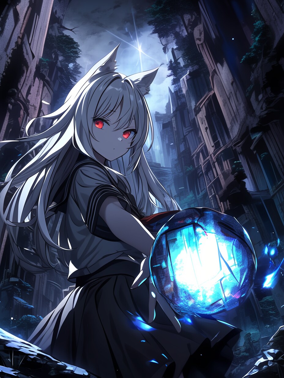 廃墟に輝く蒼い魔力/Blue Magic Shining in the Ruins”