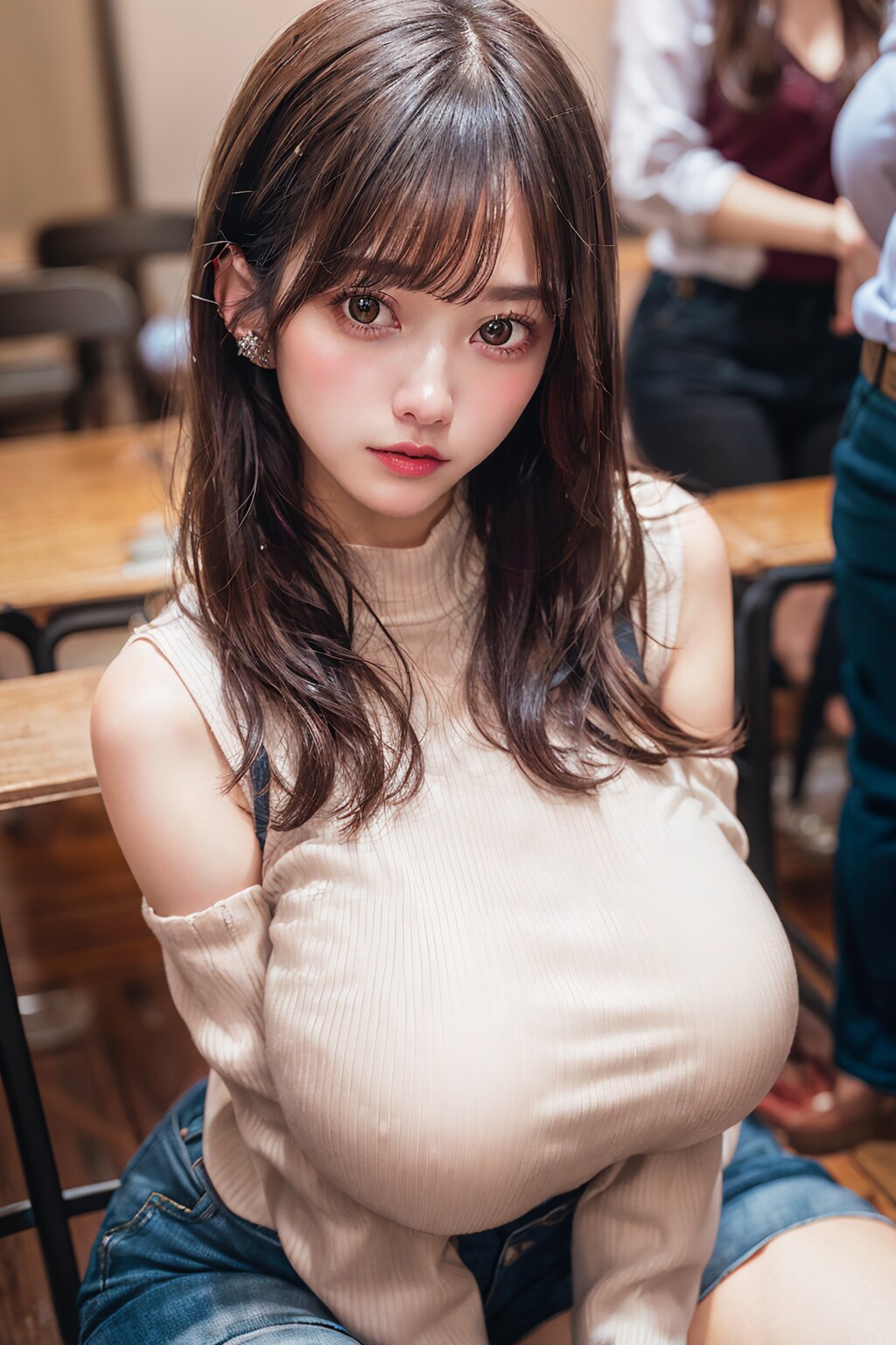 A busty JD wears clothes that make her huge breasts stand out, poses that emphasize her huge breasts, and talks to the virgins in the same seminar, and when the virgins glance at her huge breasts, she seems annoyed, but she actually loves to be eye-raped.
